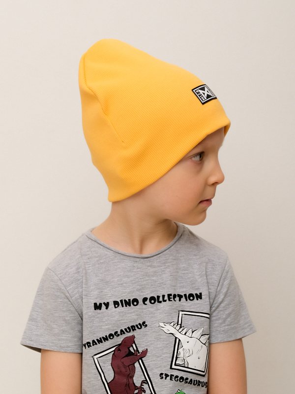 Двуслойная шапка из трикотажного материала в мелкий рубчик.