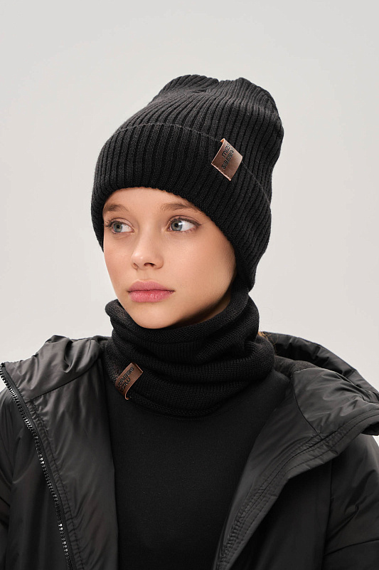 Вязаная шапка с хлопковым подкладом и с фирменной кожаной нашивкой.