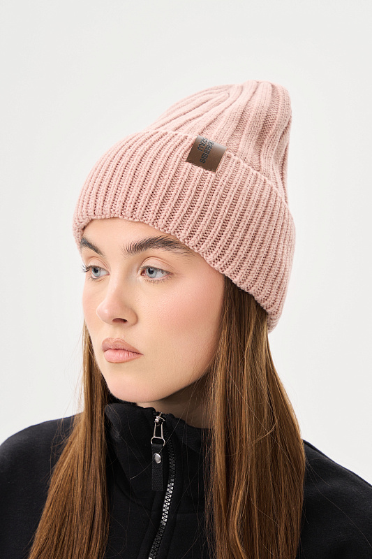 Шапка вязанная из полушерсти "лопата" с фирменной кожаной нашивкой.