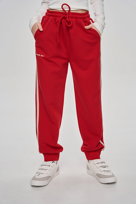 Джоггеры базового кроя с отделочными полосками по боковым швам.