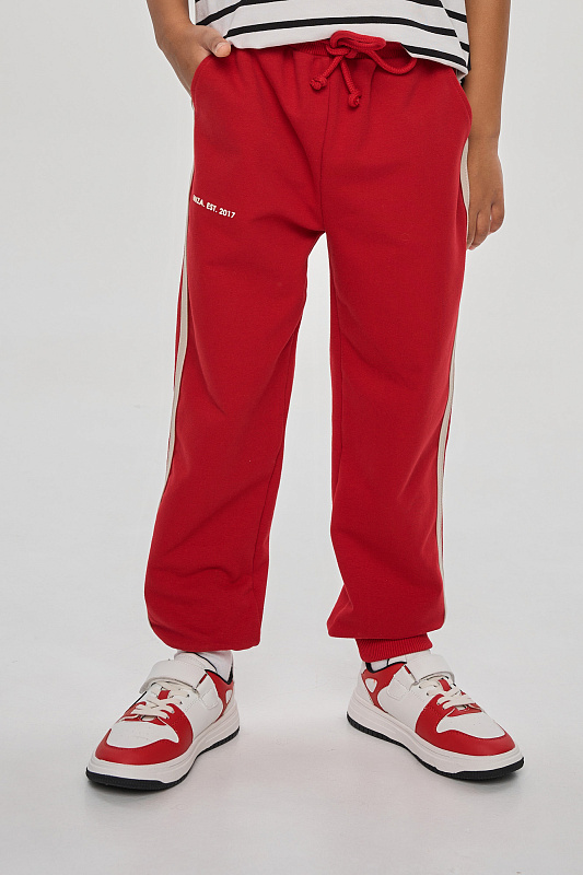 Джоггеры базового кроя с отделочными полосками по боковым швам.