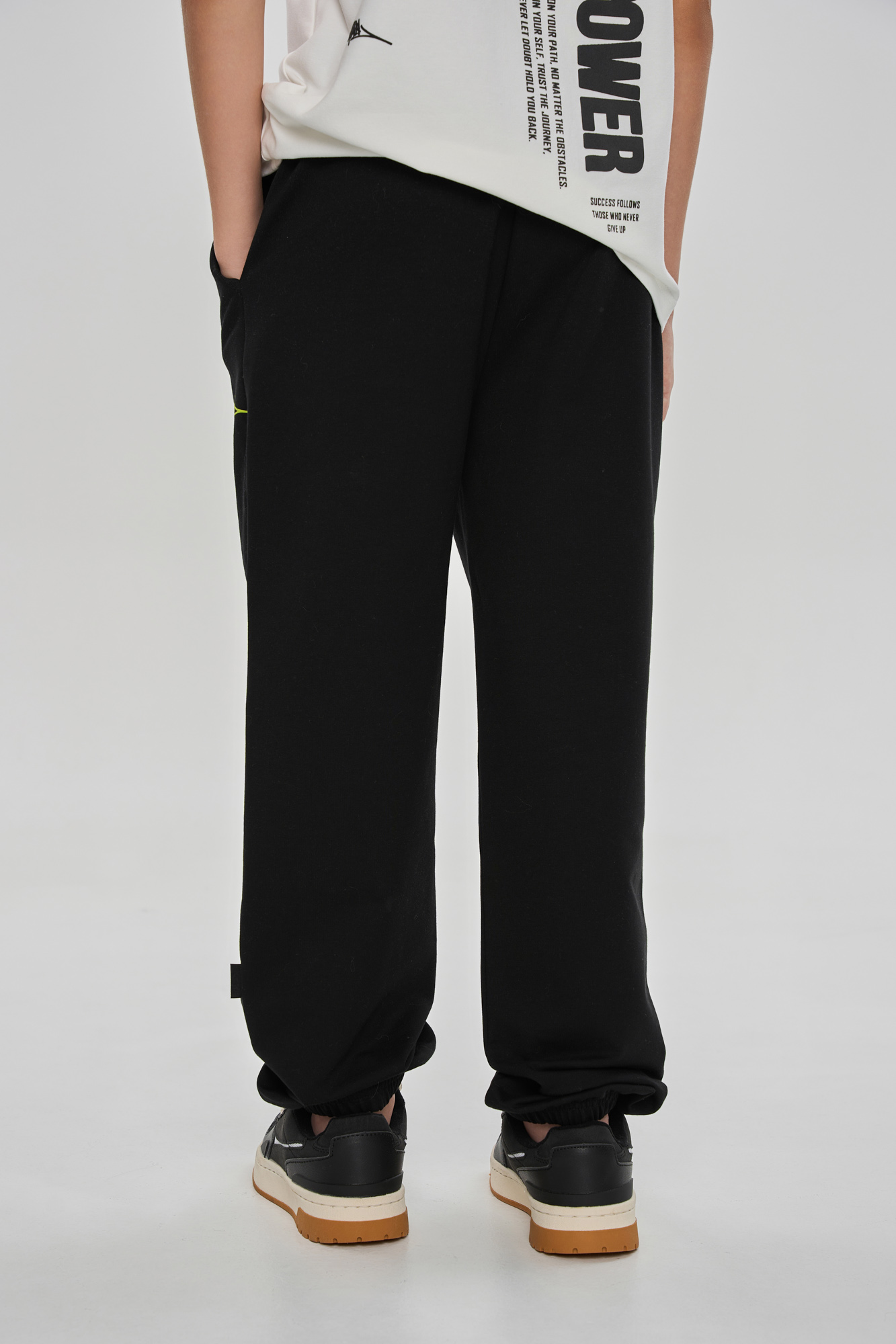 Брюки-джоггеры оформлены принтом и брендированной текстильной нашивкой на поясе.
