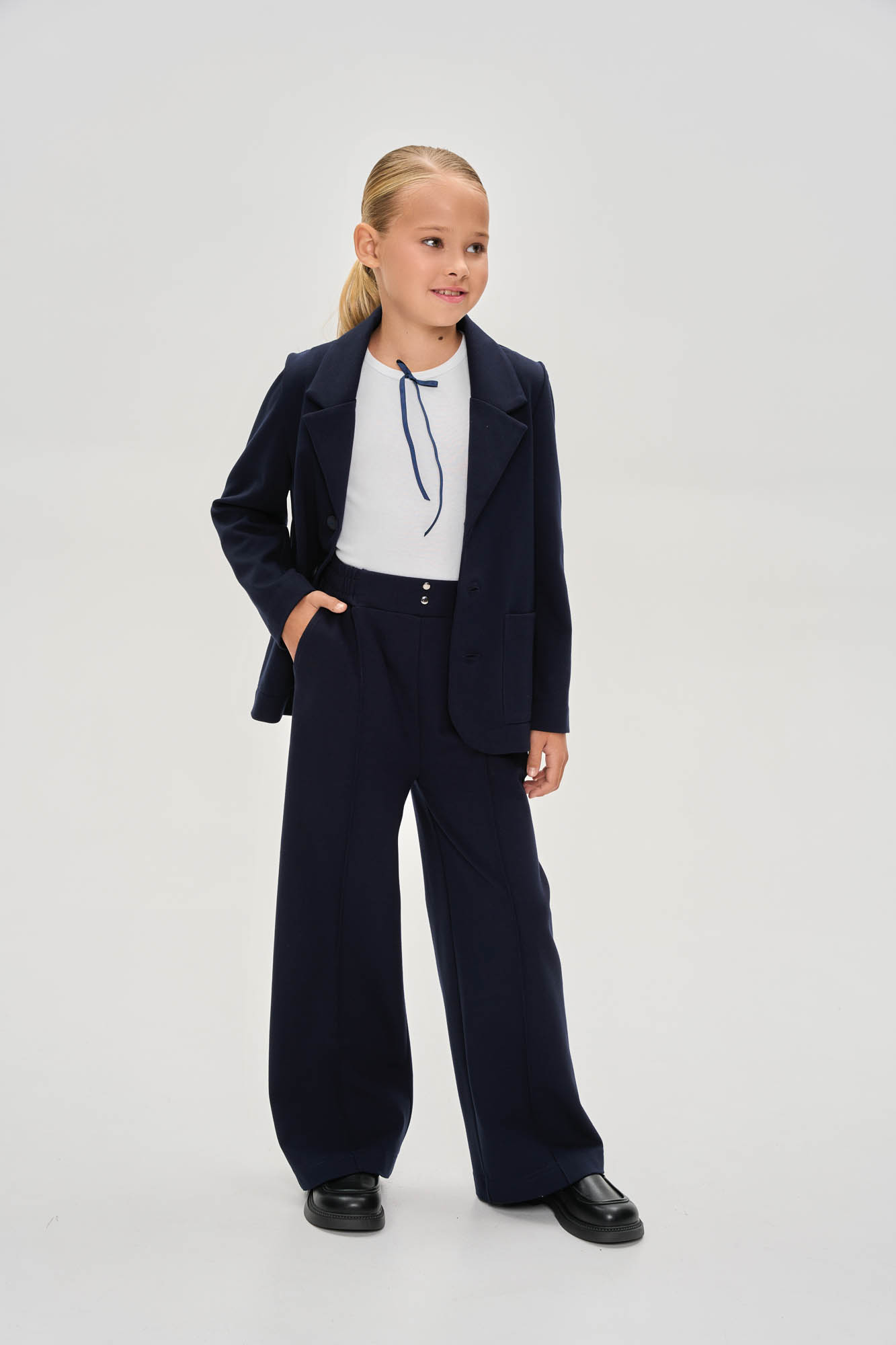 Брюки палаццо с декоративной стрелкой
