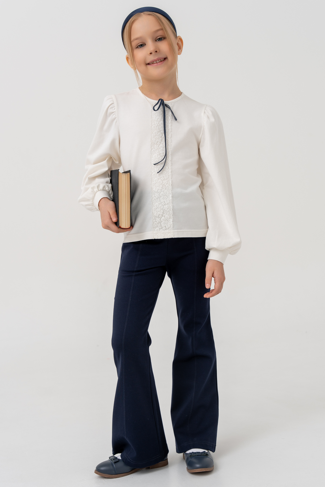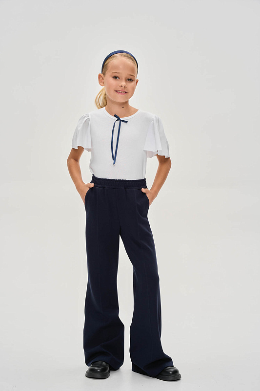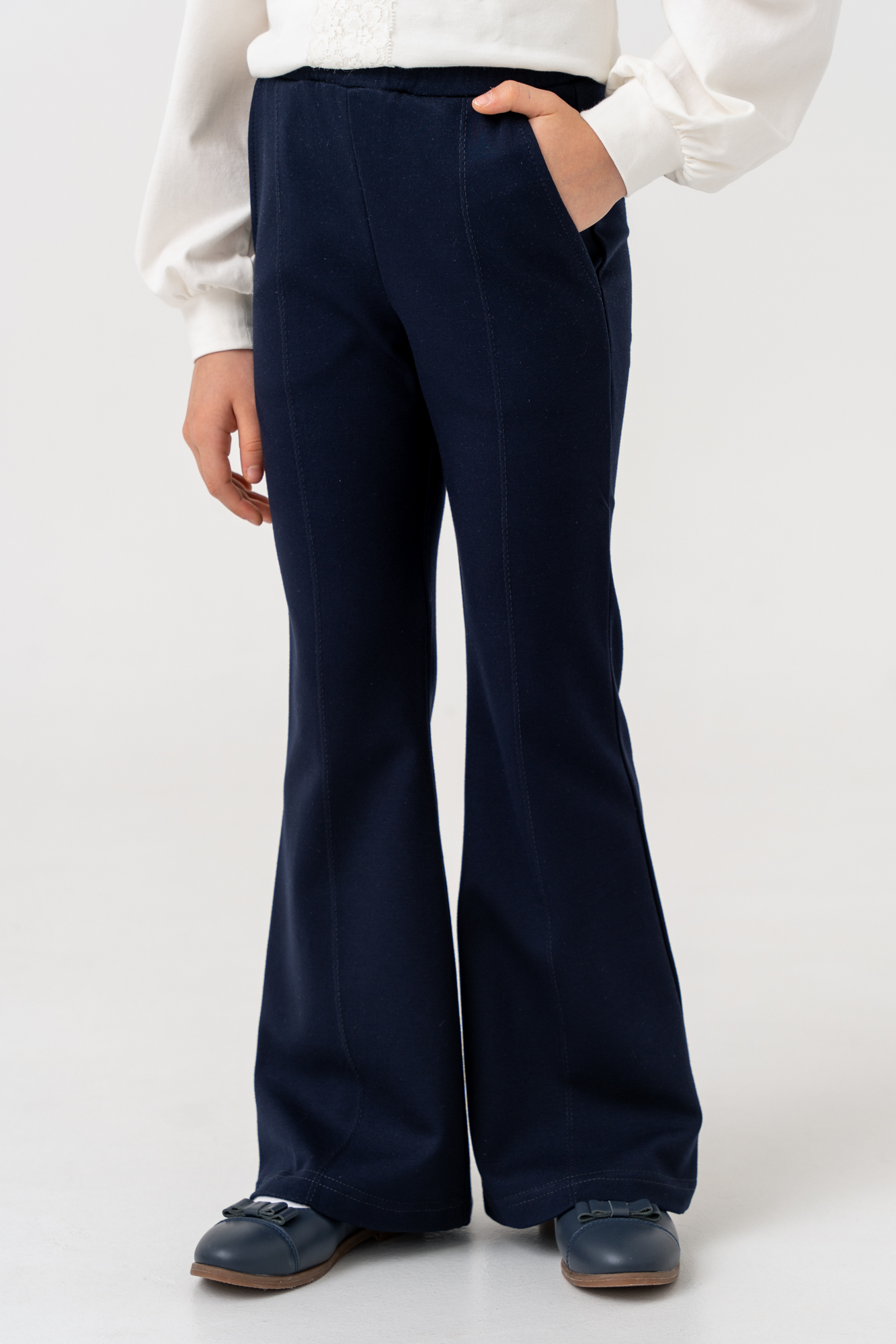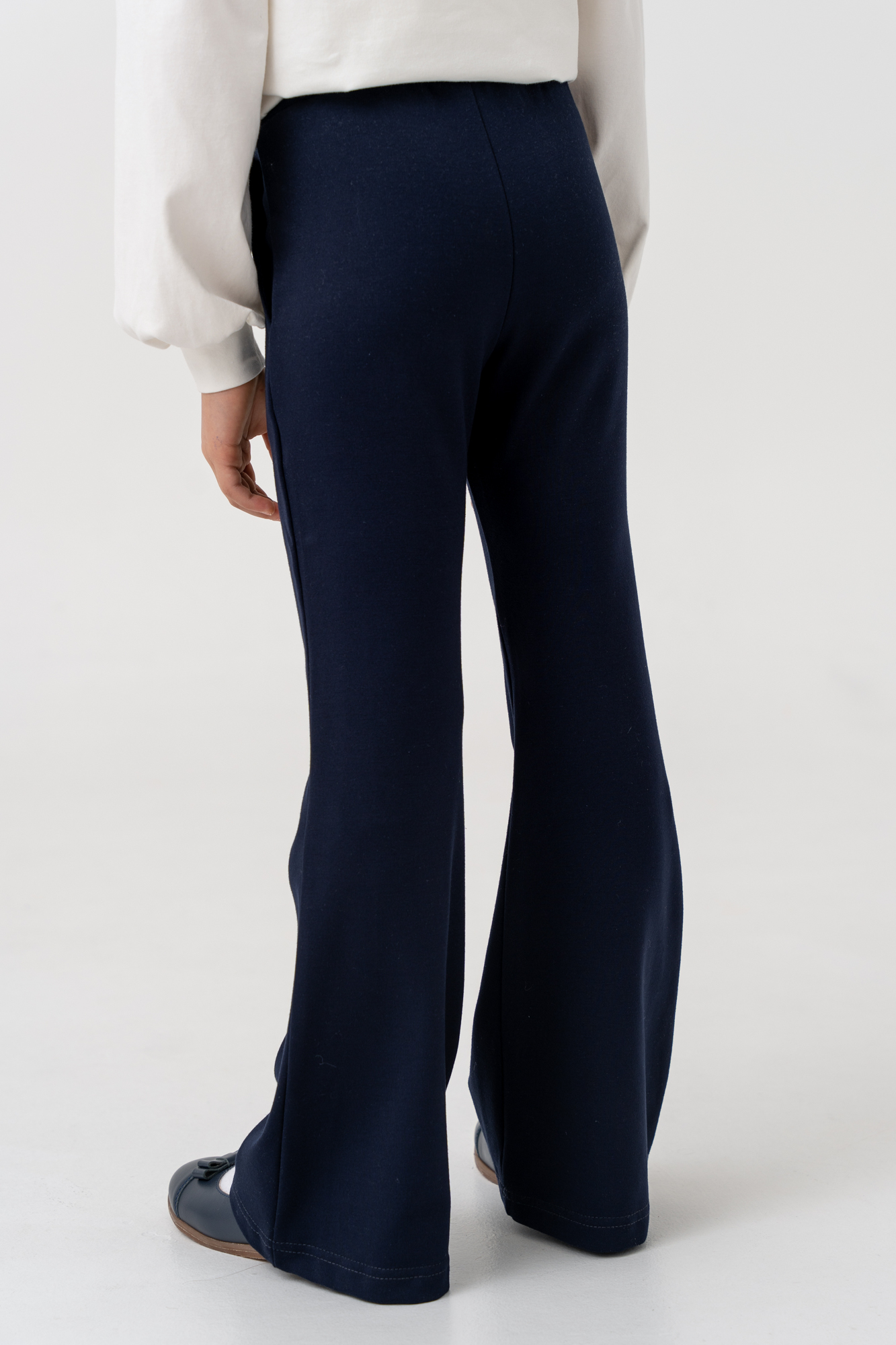 Брюки прилегающего силуэта, имеют расклешённые к низу.