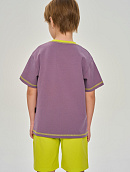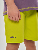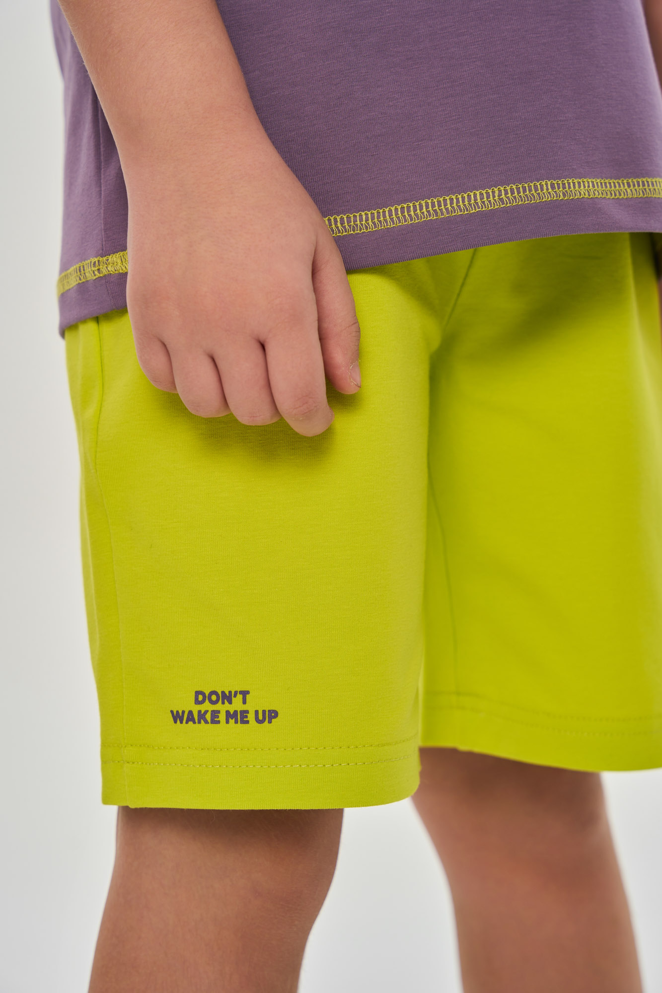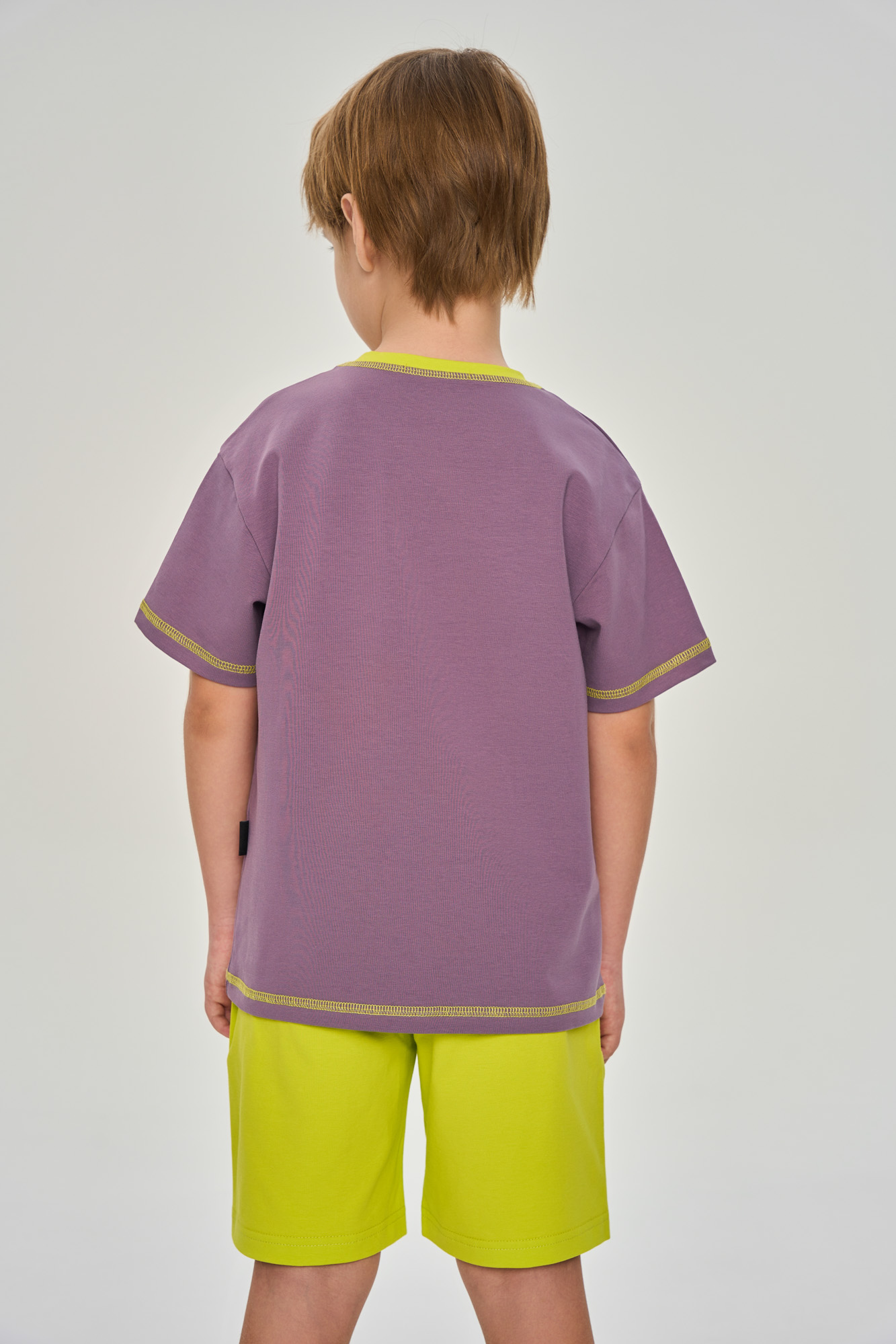 Комплект состоит из футболки свободного кроя и прямых свободных шорт.