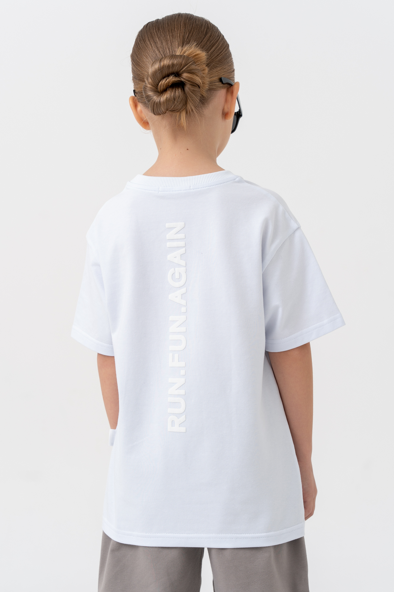 На спине оформлена объемным текстовым принтом в цвет материала.