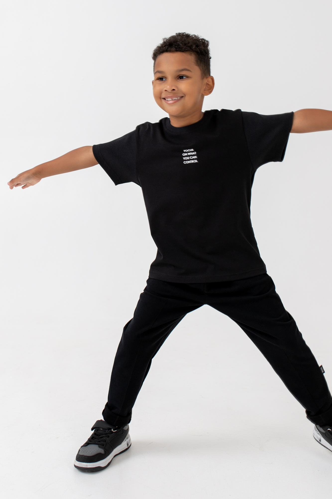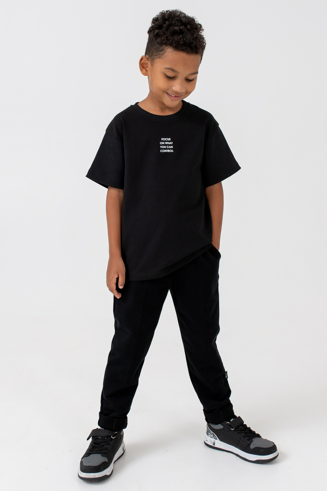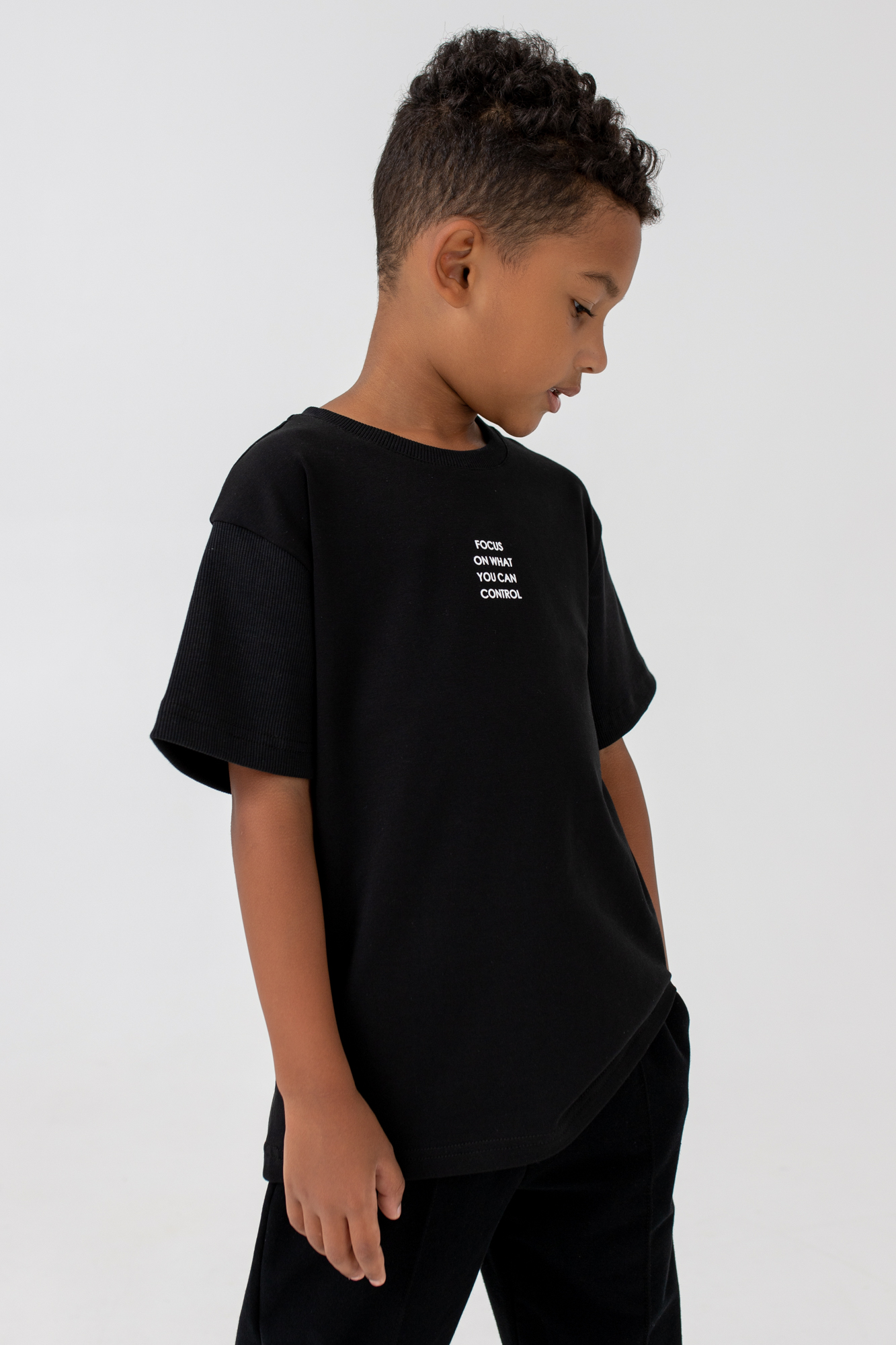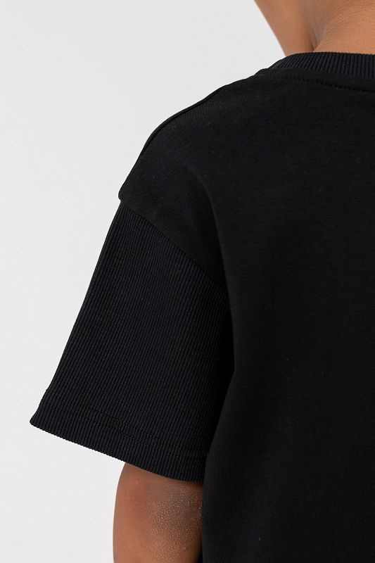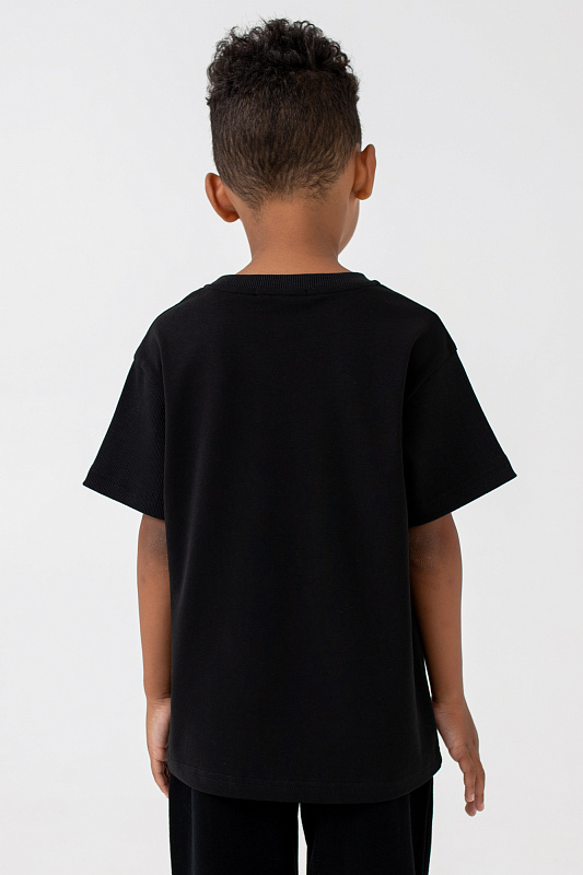 Футболка свободного кроя с монохромным текстовым принтом на переде.