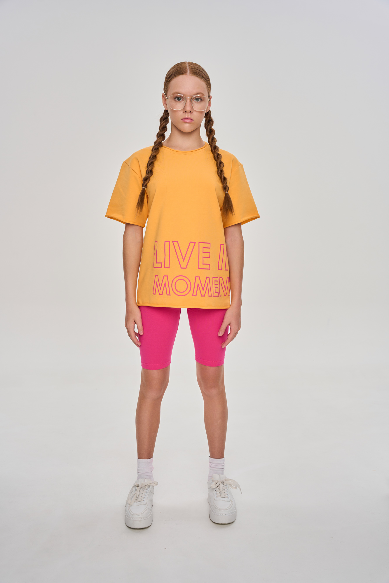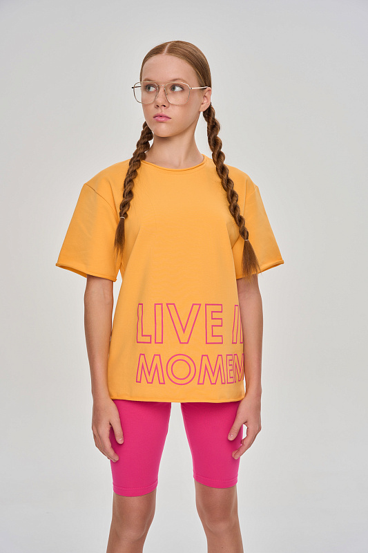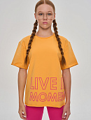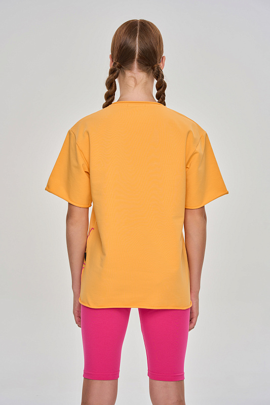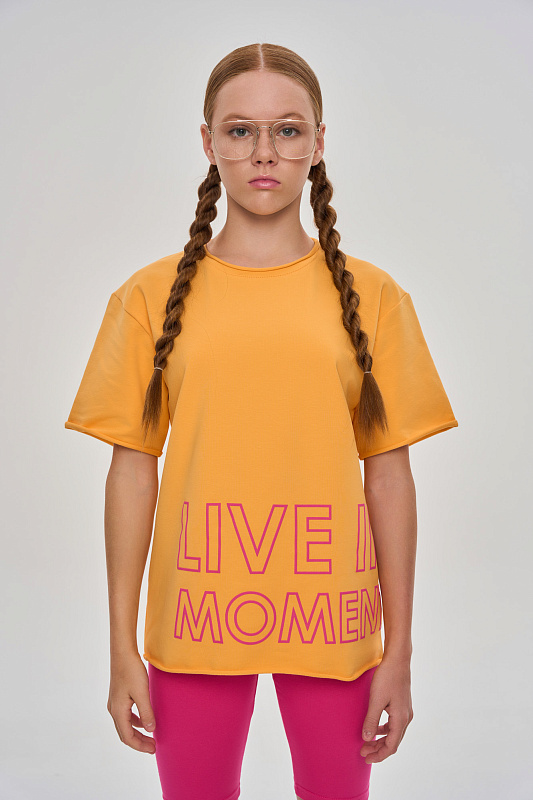 Удлиненная футболка свободного кроя, оформлена графичными авторскими принтами.