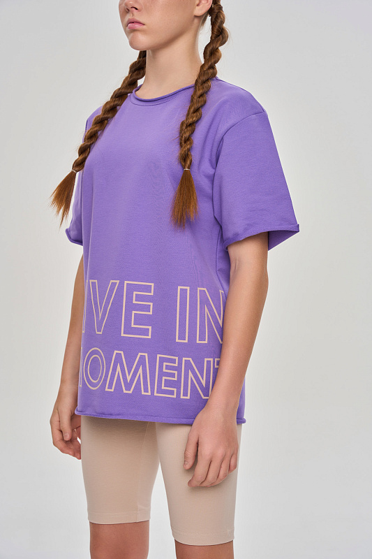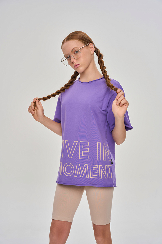 Удлиненная футболка свободного кроя, оформлена графичными авторскими принтами.