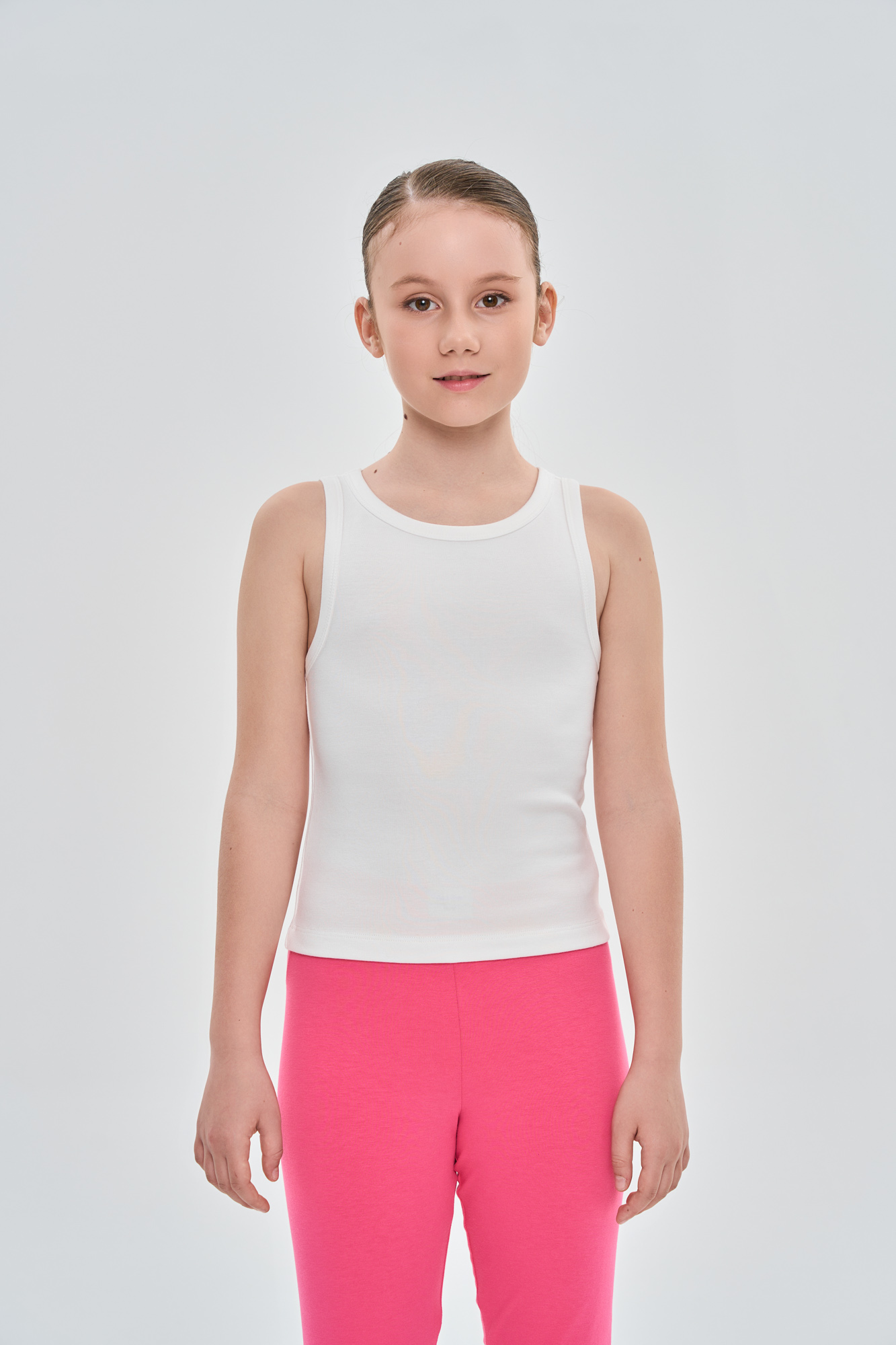 Майка прилегающего кроя, выполнена из нежного органического трикотажа, содержащего хлопок и модал.