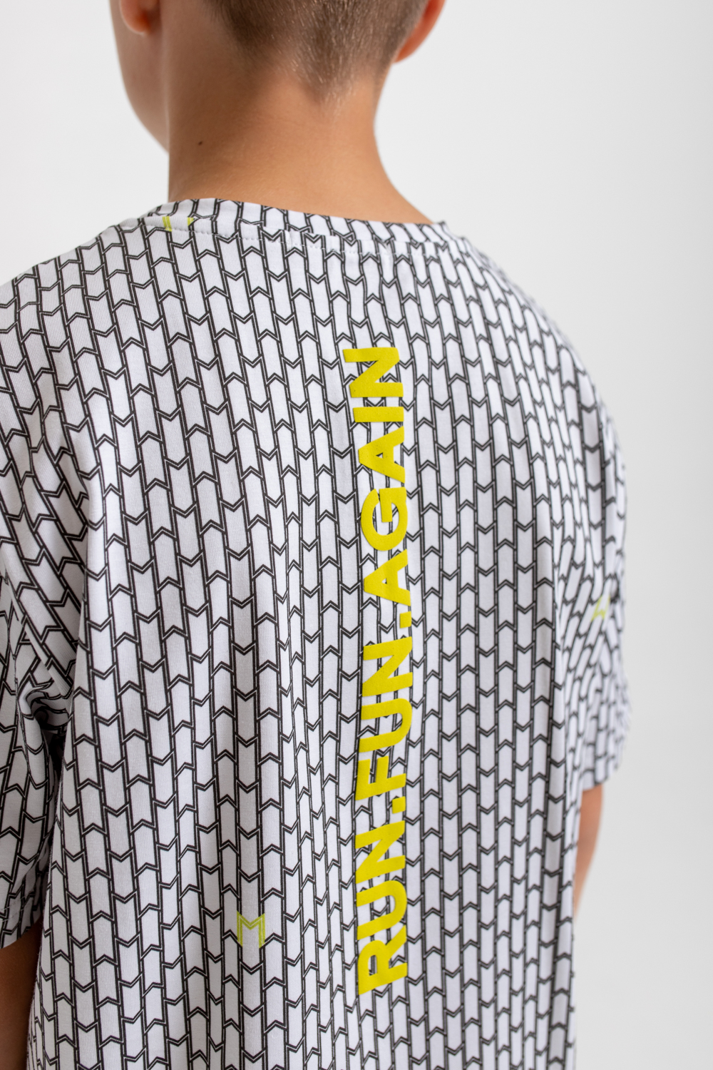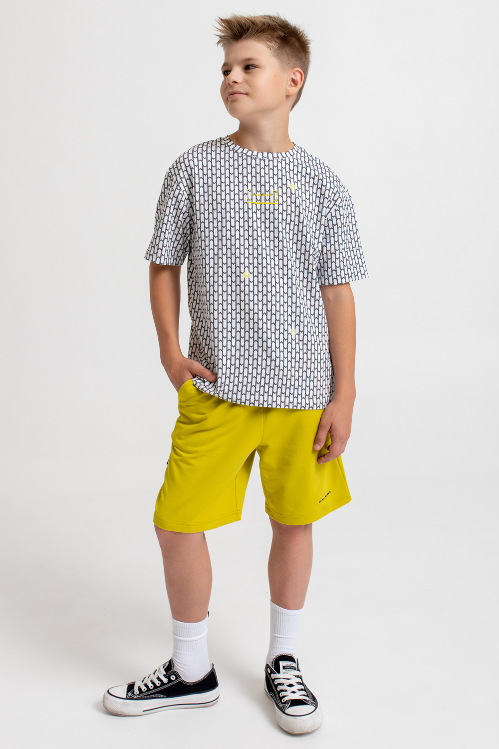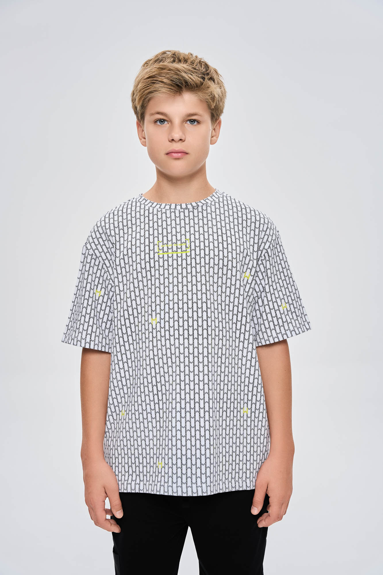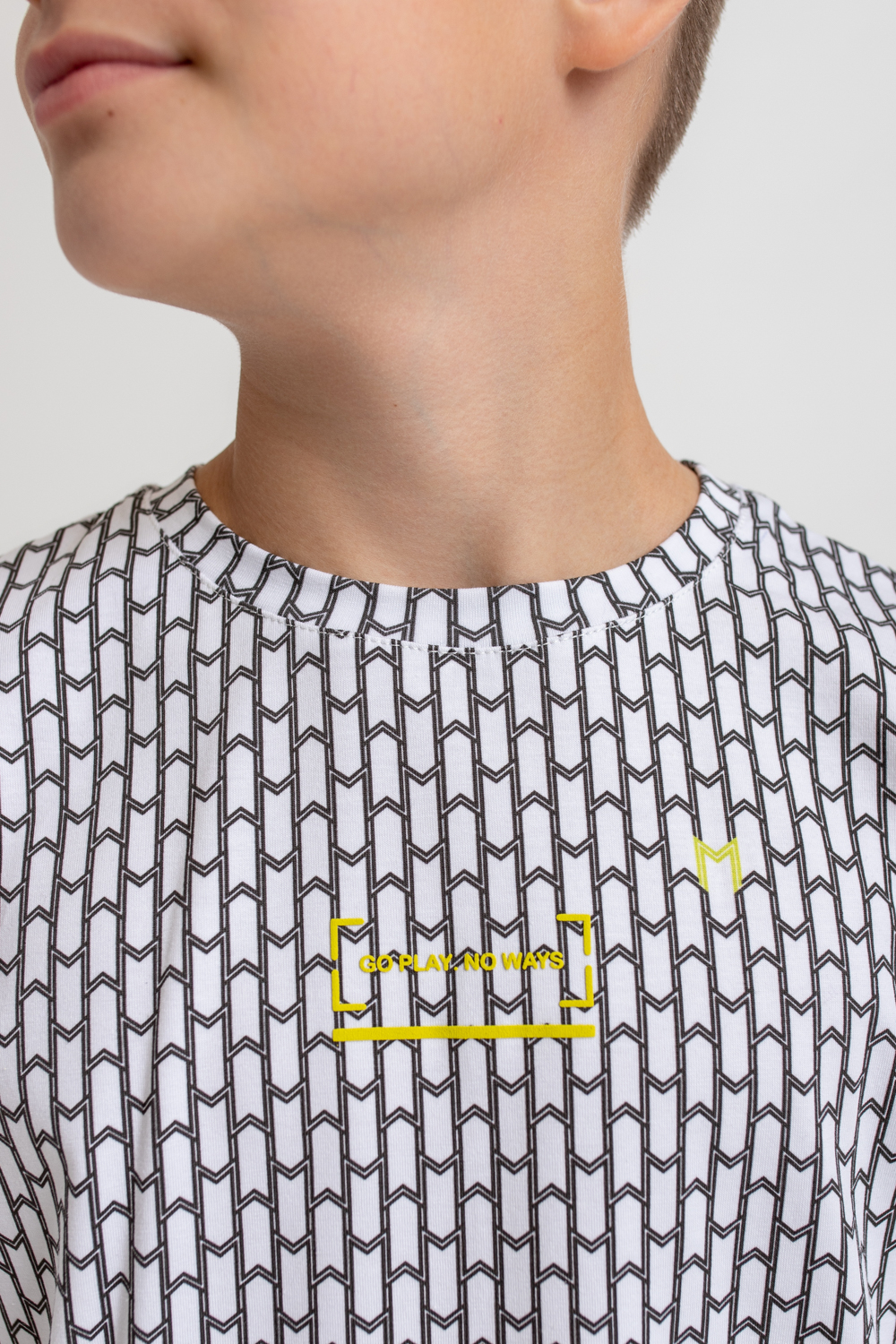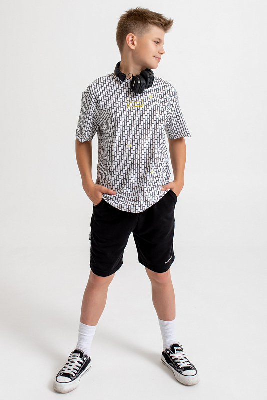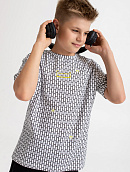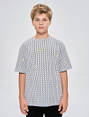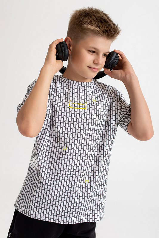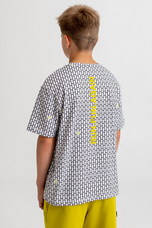 Футболка свободного кроя, оформлена принтами на переде и спине.