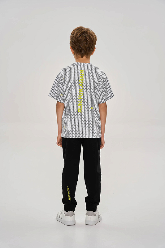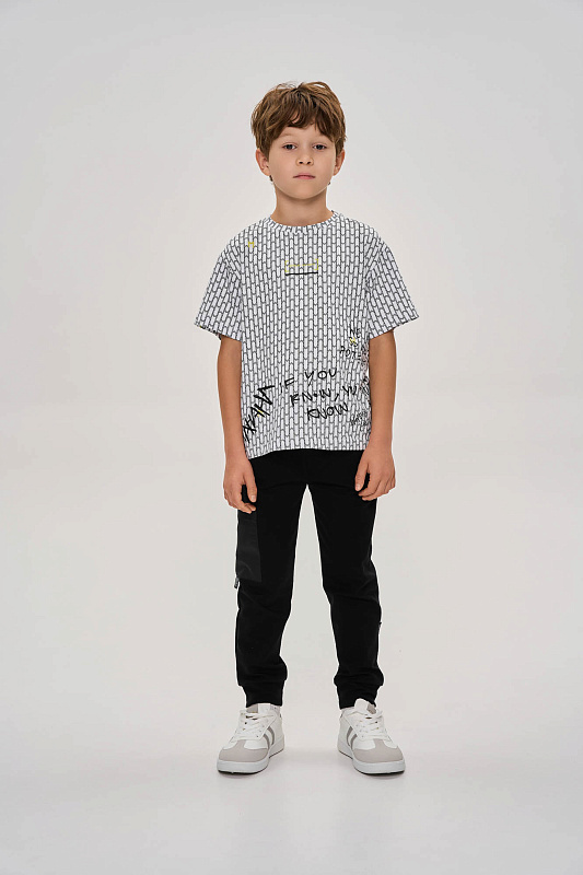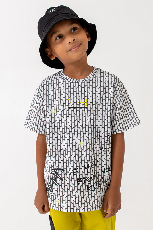 Футболка свободного кроя, оформлена авторскими принтами на переде и спине.