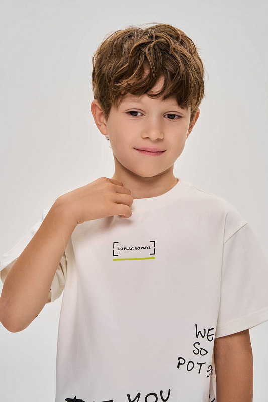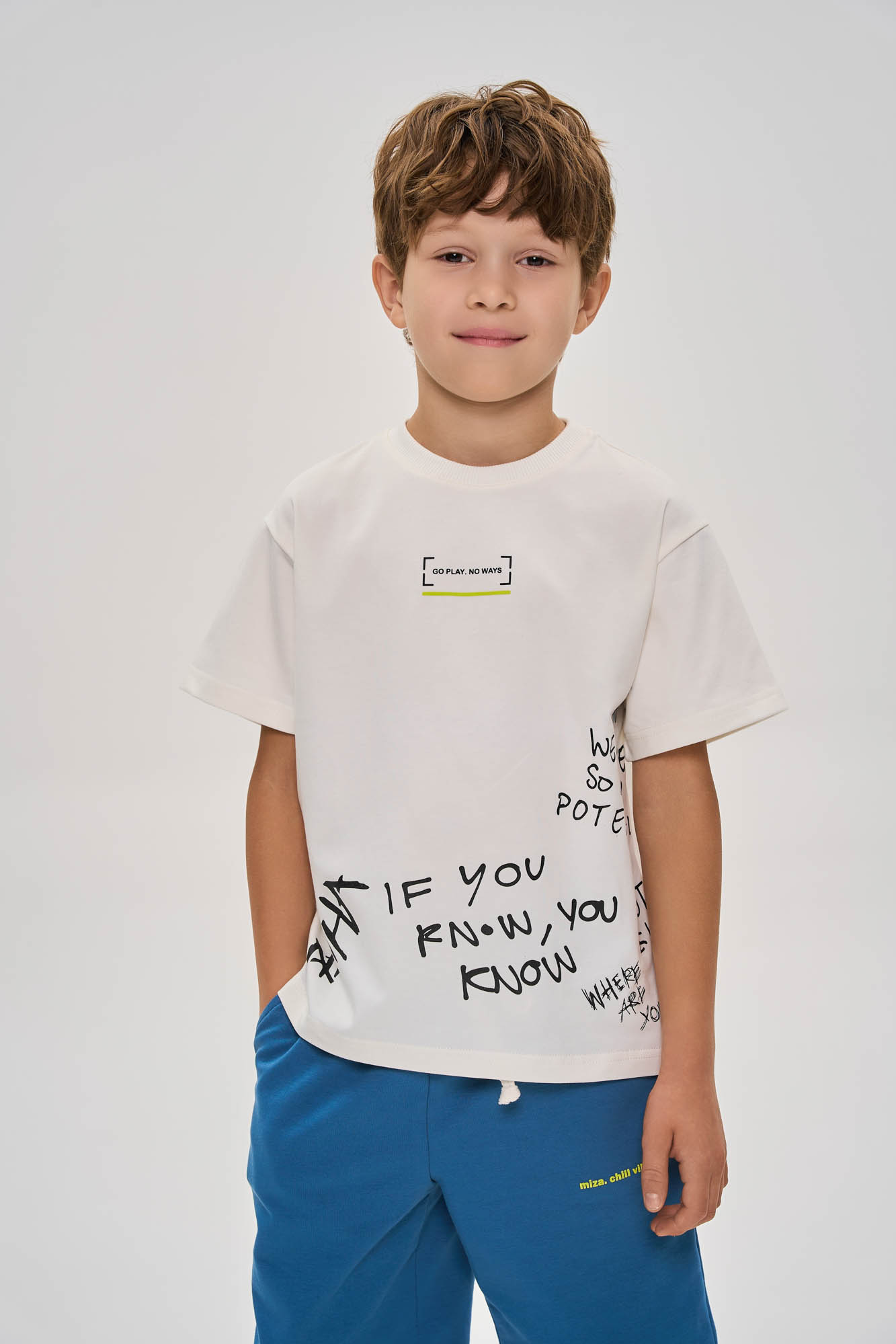 Футболка свободного кроя, оформлена авторскими принтами на переде и спине.