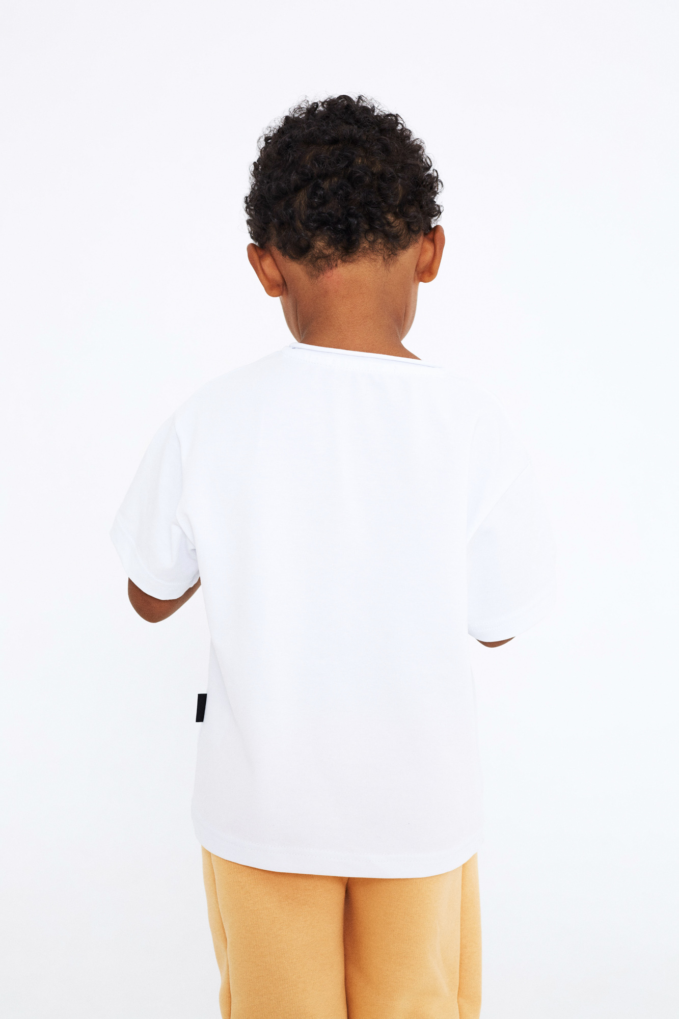 По переду яркий дизайнерский принт с объемной надписью SoftTouch.
