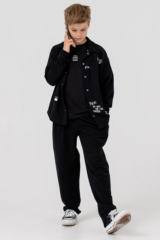 Рубашка свободного кроя с длинным рукавом, с застежкой на металлические кнопки.