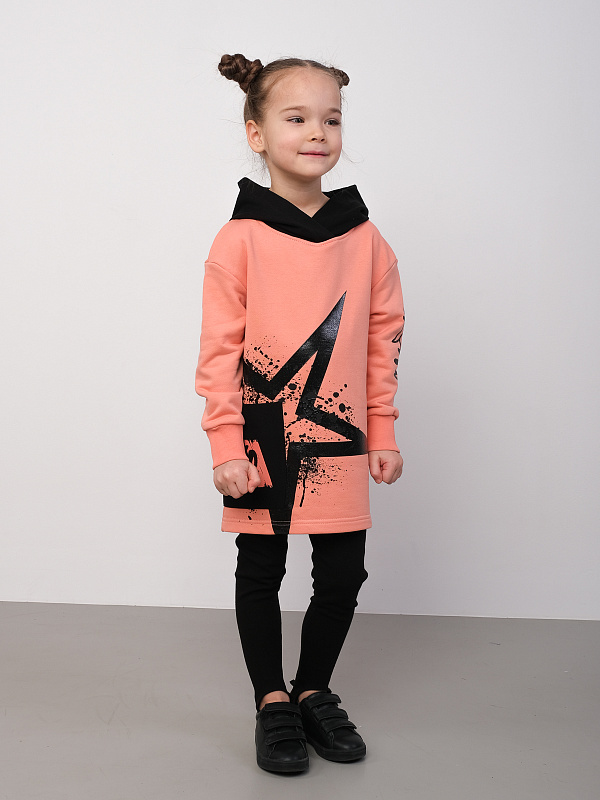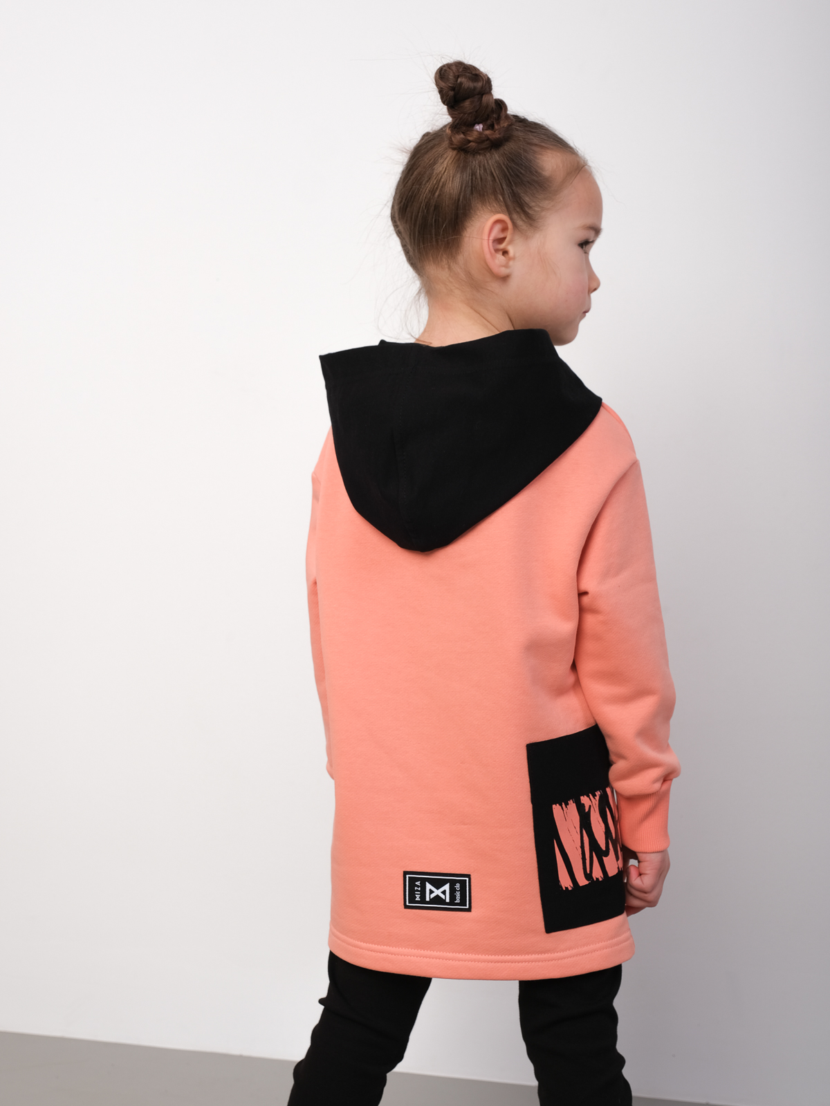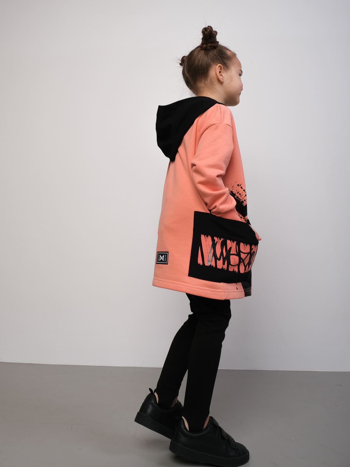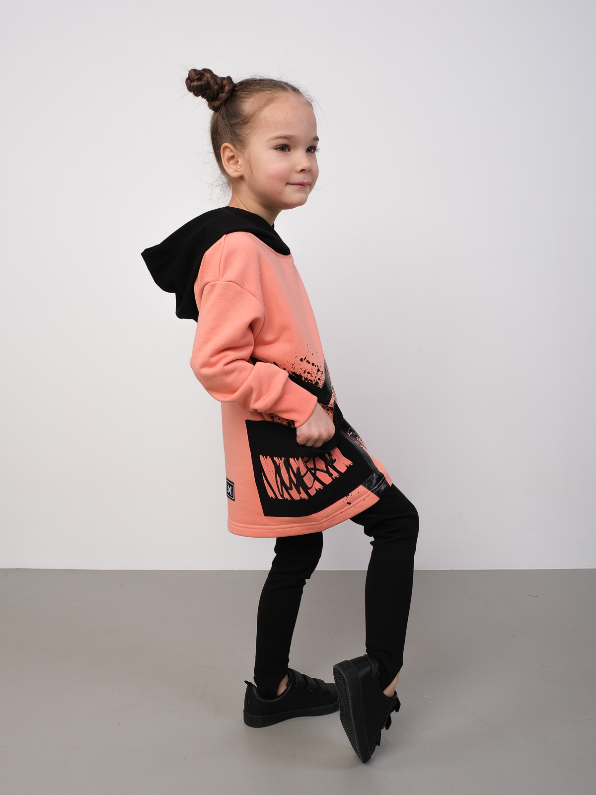 Яркий принт, контрастный карман, переходящий с переда на спинку, черный капюшон - все это делает модель очень эффектной и никого не оставит равнодушным.