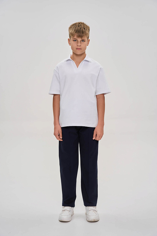 Рубашка-поло свободного силуэта без застежки.
