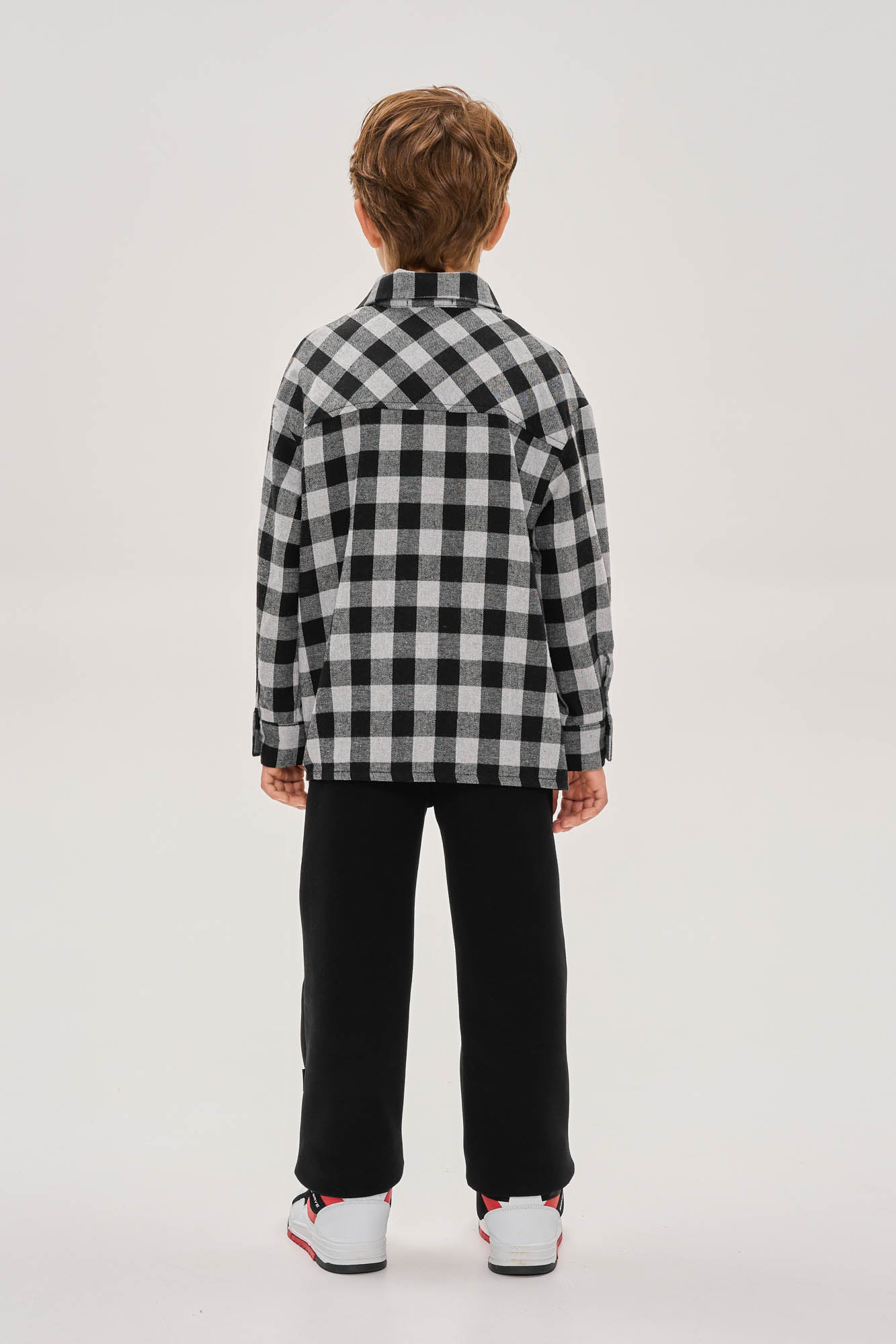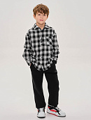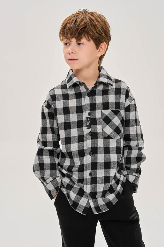 Рубашка свободного прямого кроя из плотной ткани.