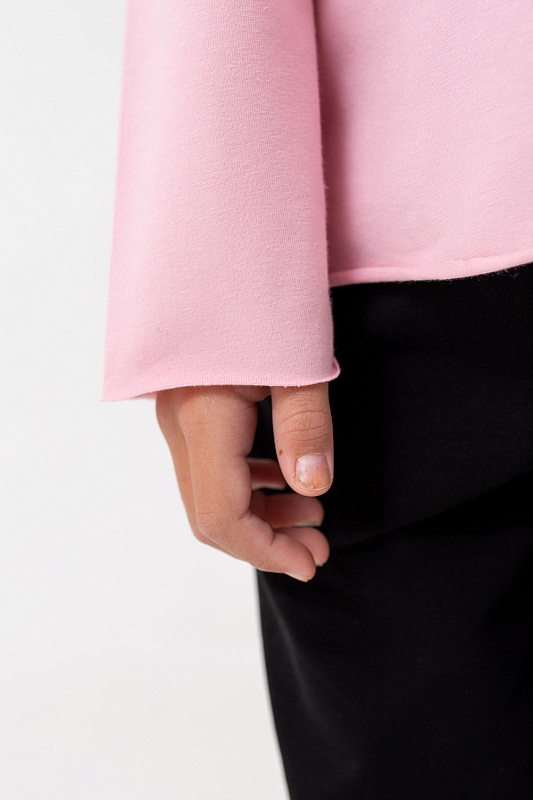 Горловина и низ изделия и рукавов выполнены с имитацией открытого среза.