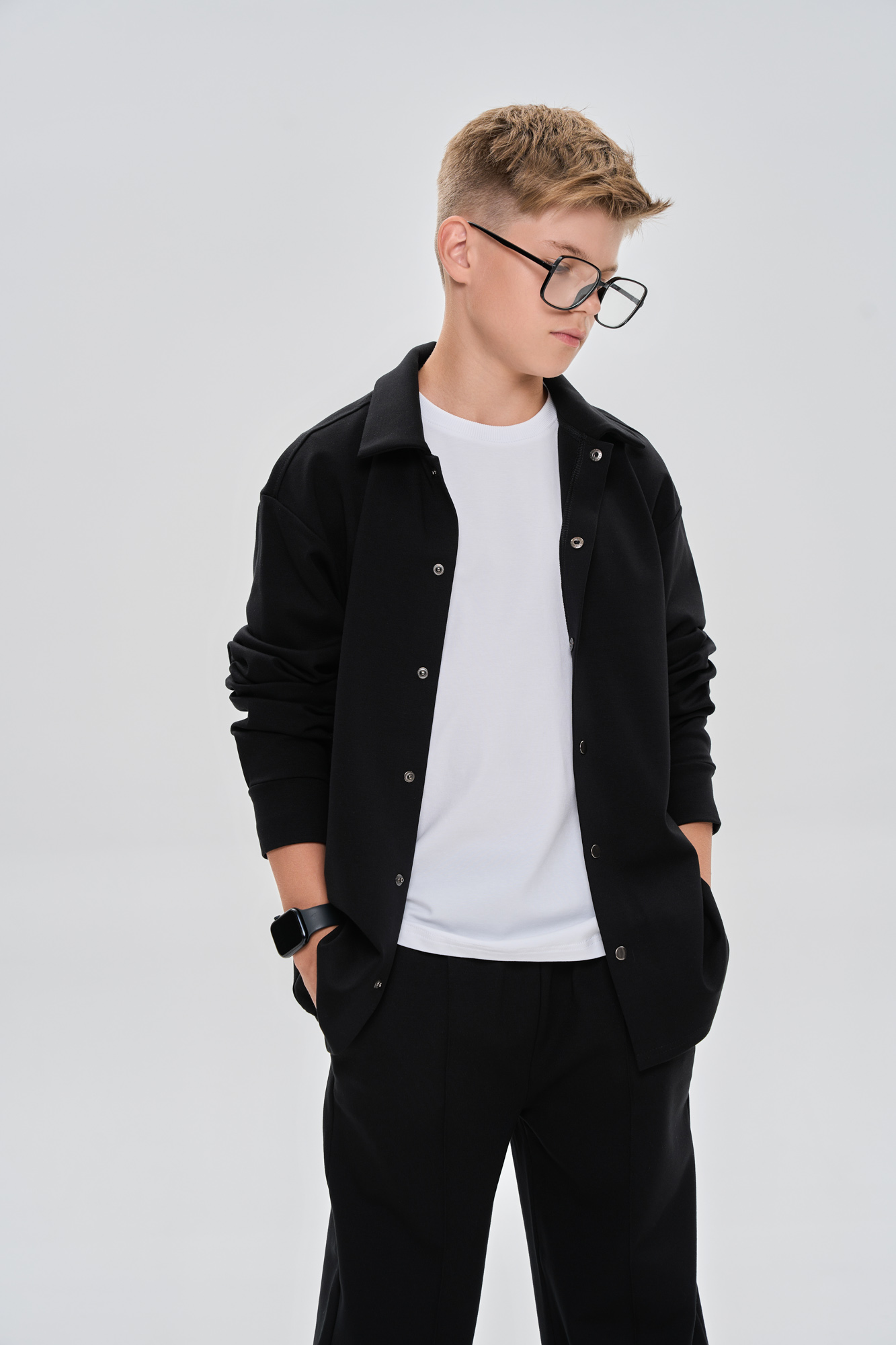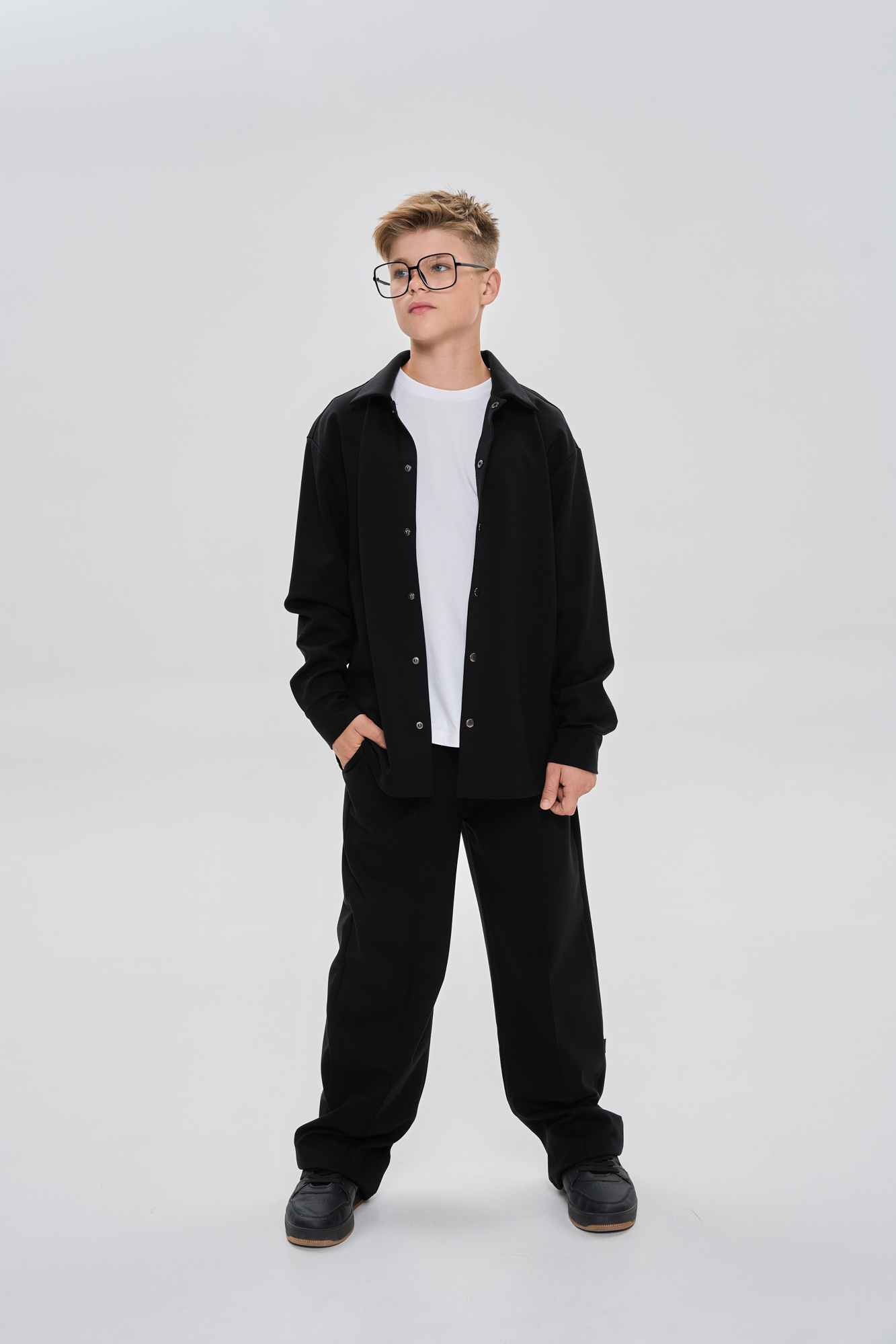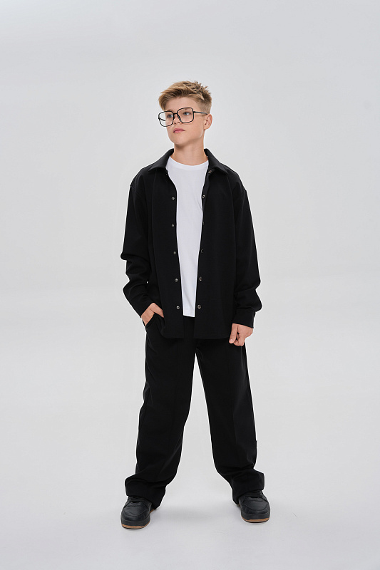 Рубашка свободного кроя с застежкой на металлические кнопки.