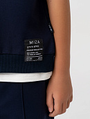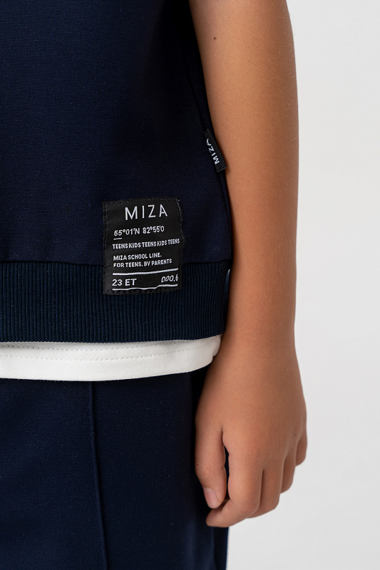 Горловина, пройма и пояс обработаны эластичным трикотажем в мелкий рубчик.