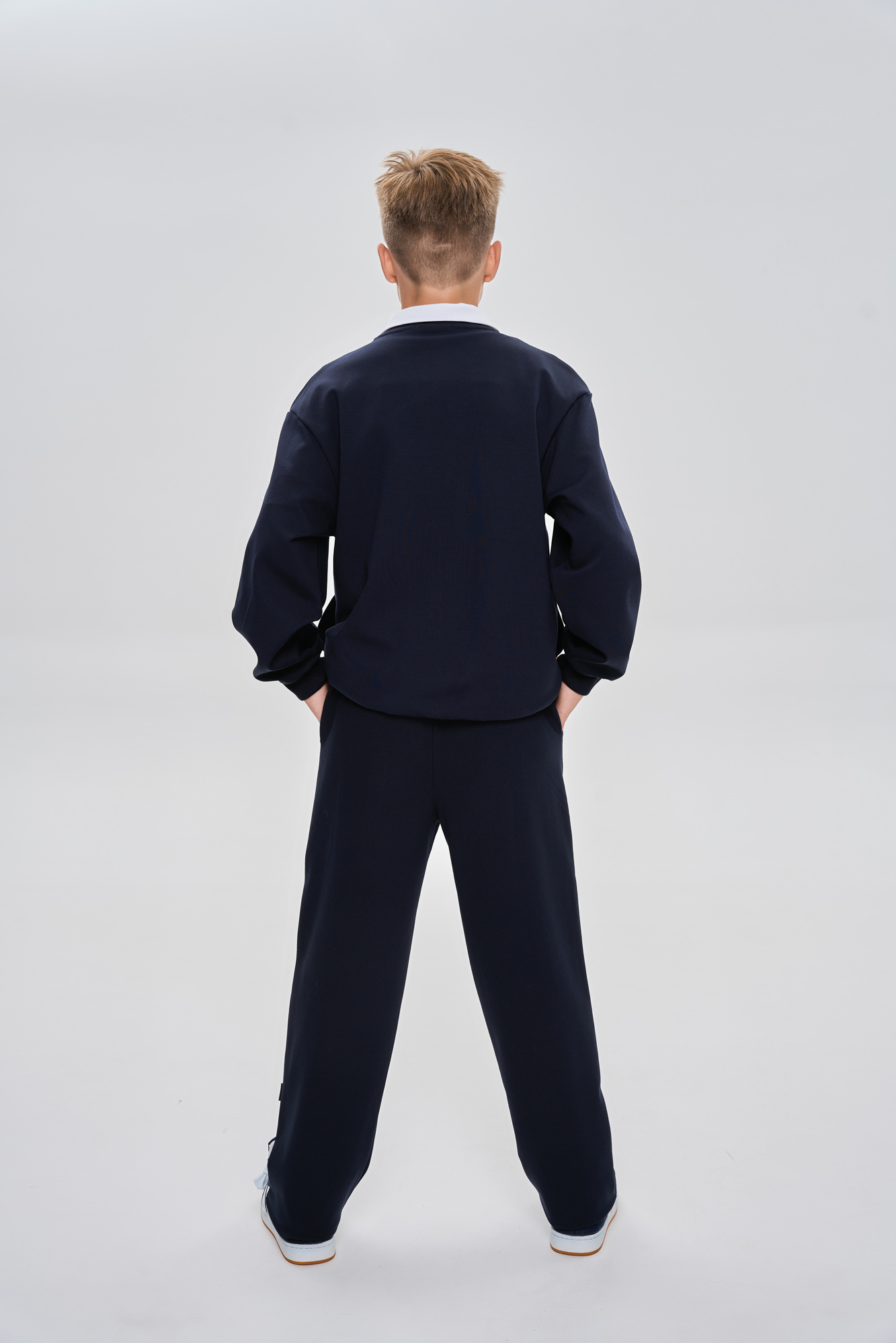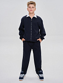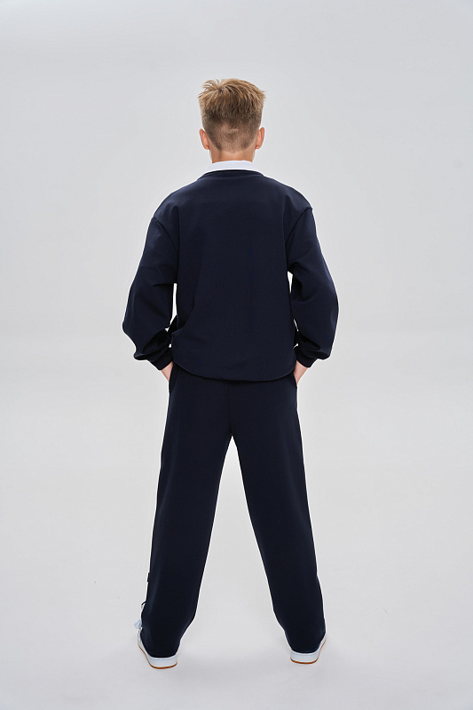 Воротник, манжеты и пояс выполнены из эластичного трикотажа в рубчик.