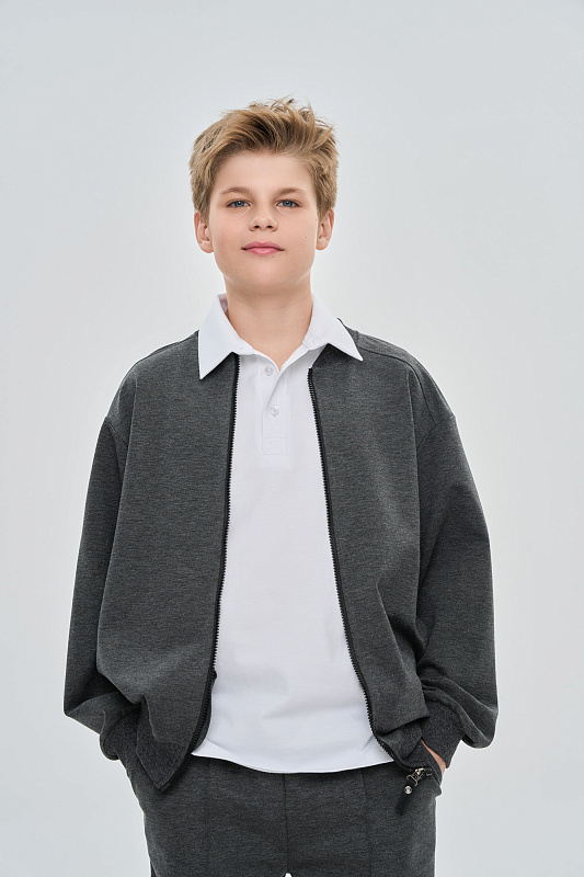 Бомбер свободного кроя с застежкой-молнией на переде.