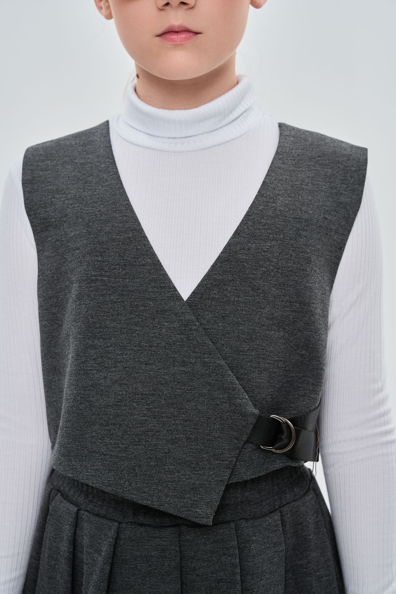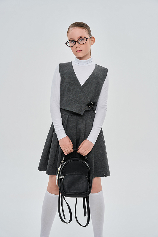 Жилет укороченный, асимметричного кроя, с боковой завязкой из текстильной ленты.