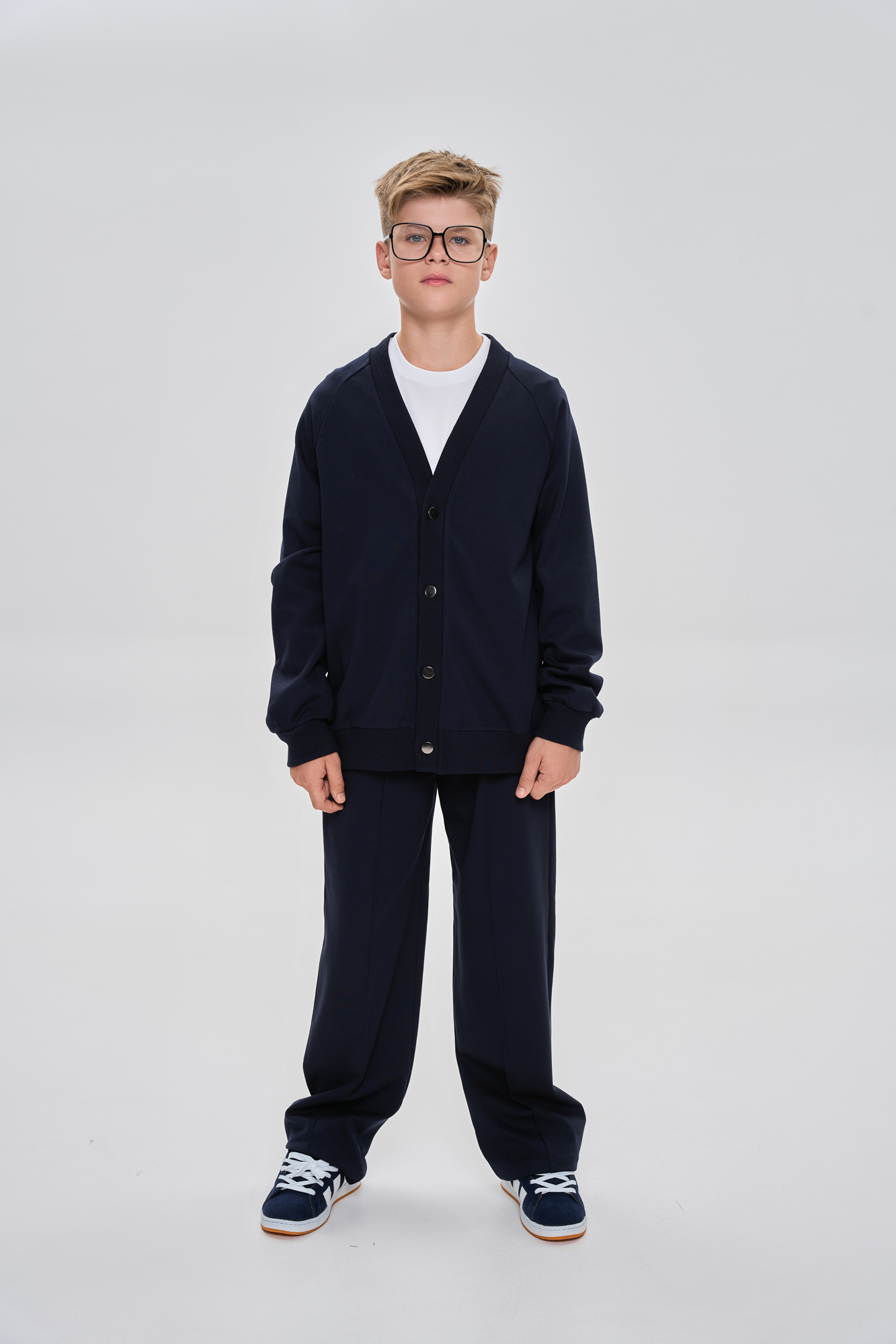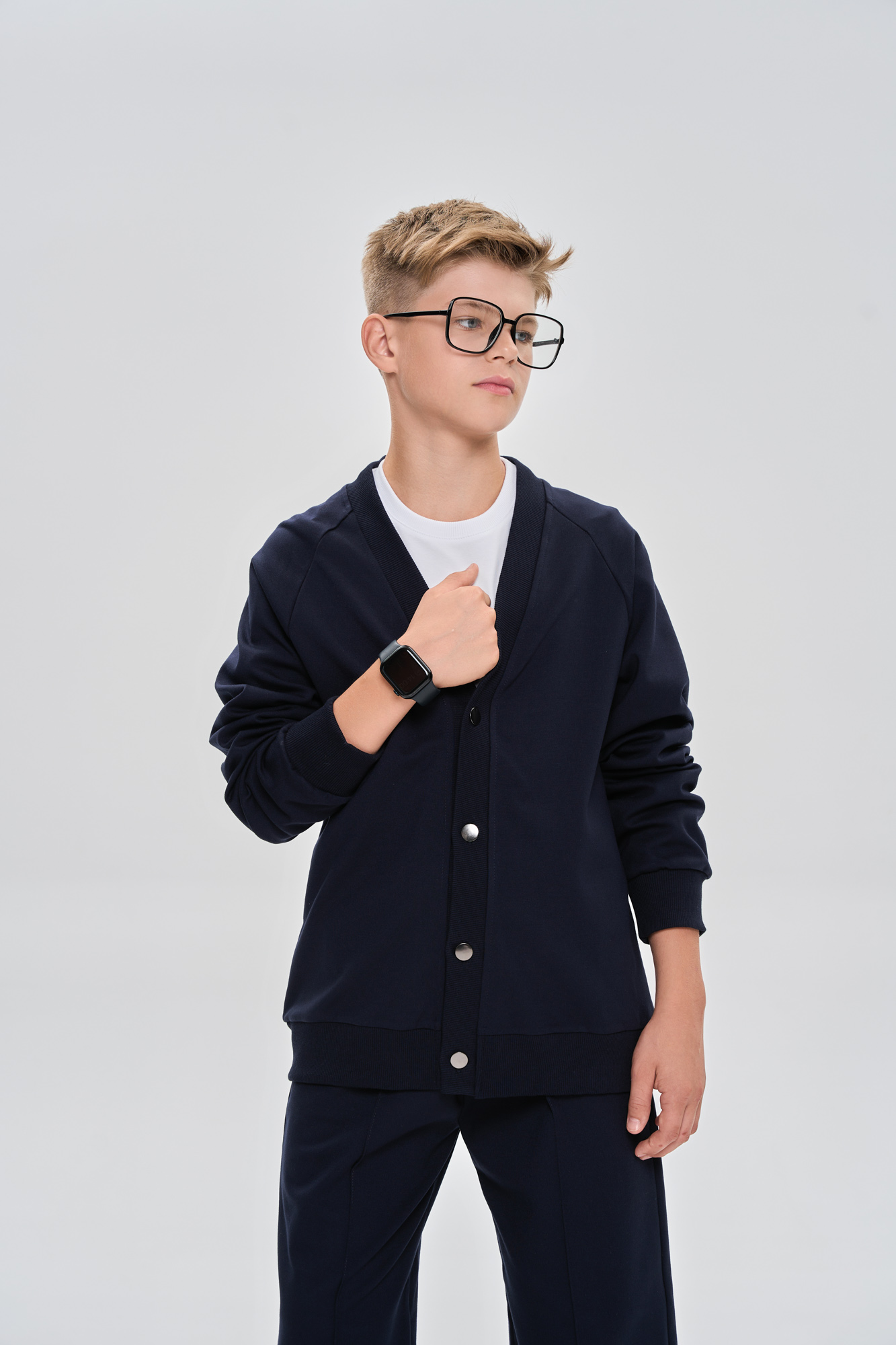 Кардиган свободного кроя с застежкой на металлические пуговицы.