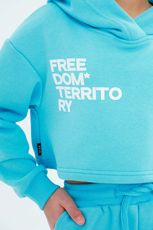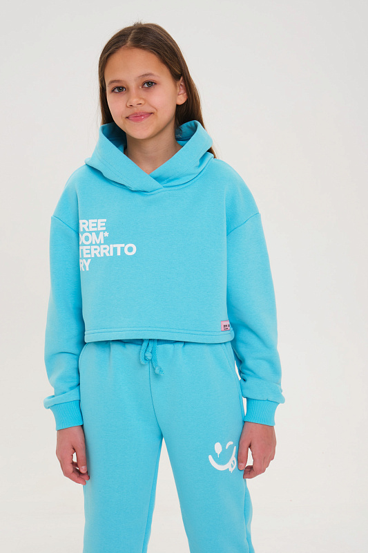 Укороченный худи из мягкого плотного трикотажа Пенье с петельной изнанкой.