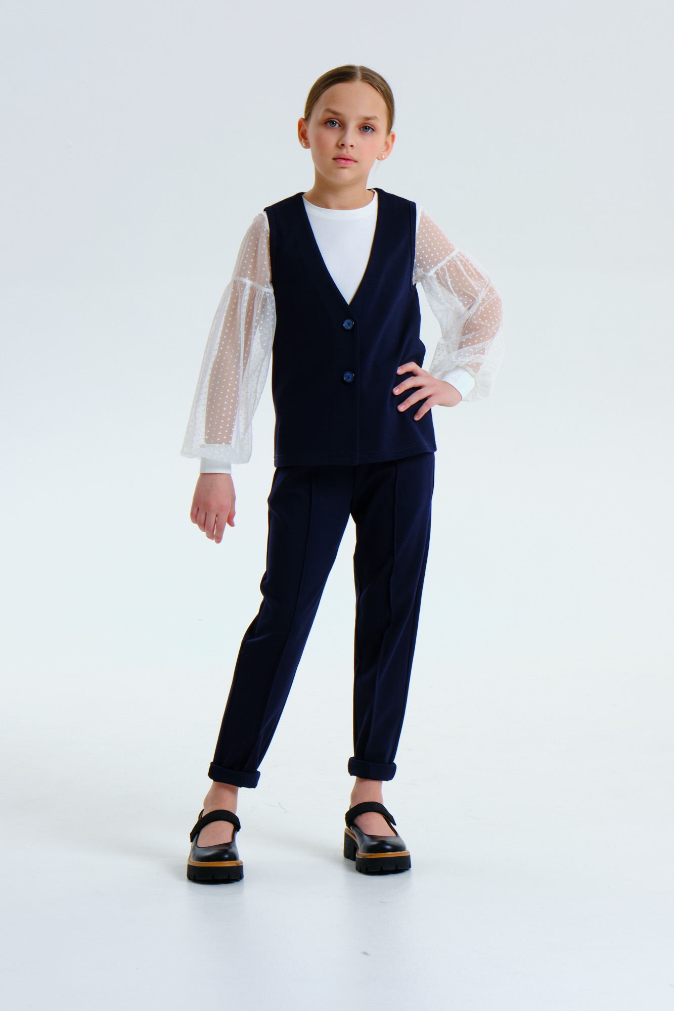 Выполнен из мягкого плотного трикотажа.