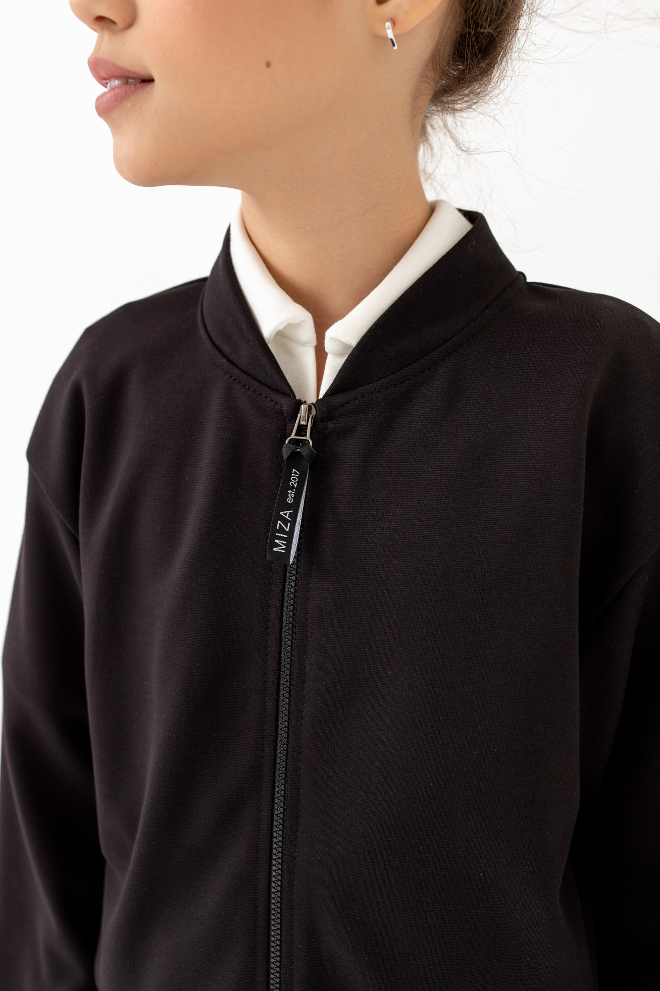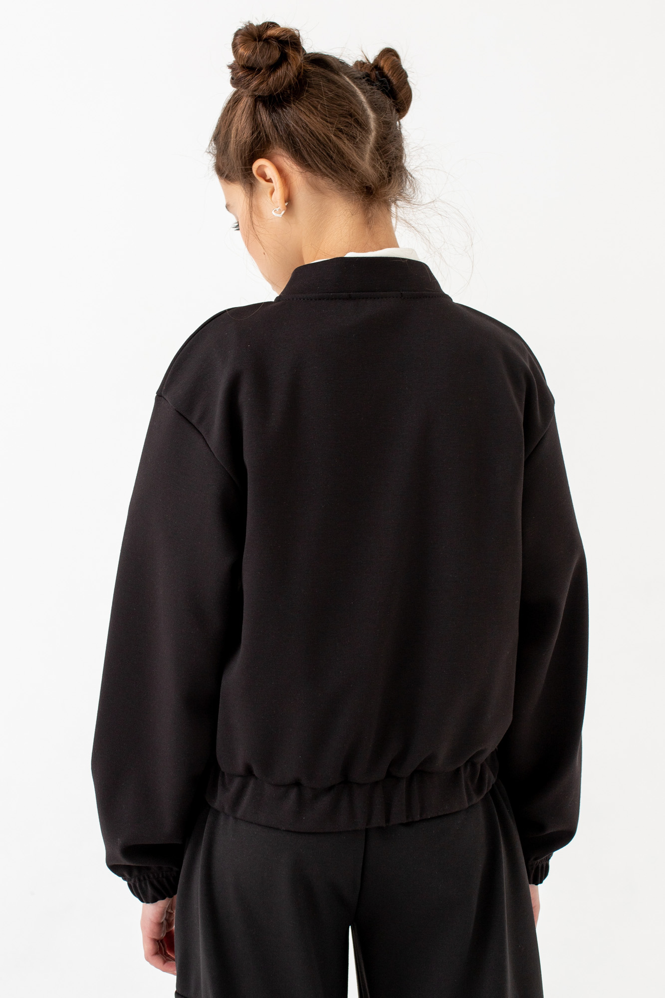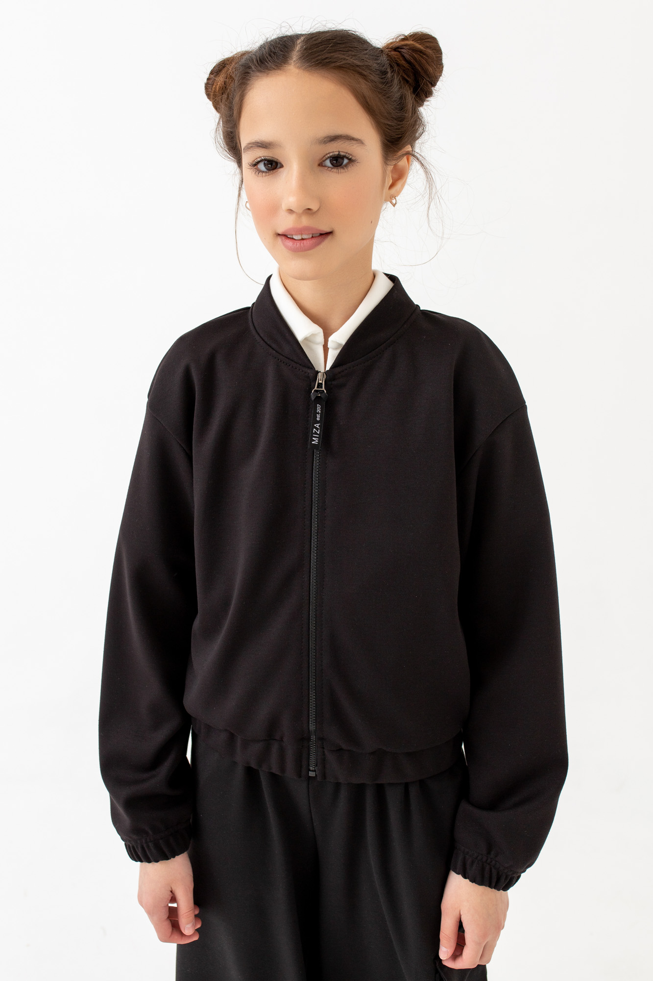 Стильный укороченный бомбер из гладкого плотного трикотажа с застежкой на молнию.