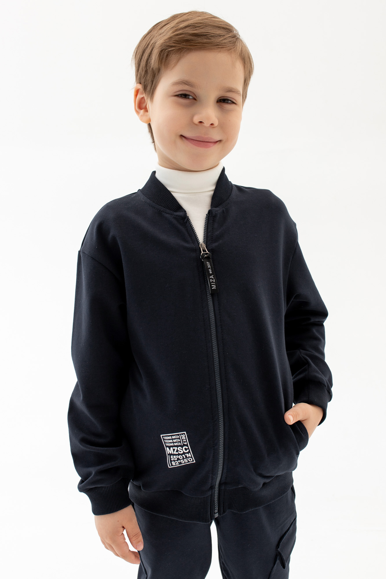 Бомбер свободного кроя с застежкой на замок-молнию.