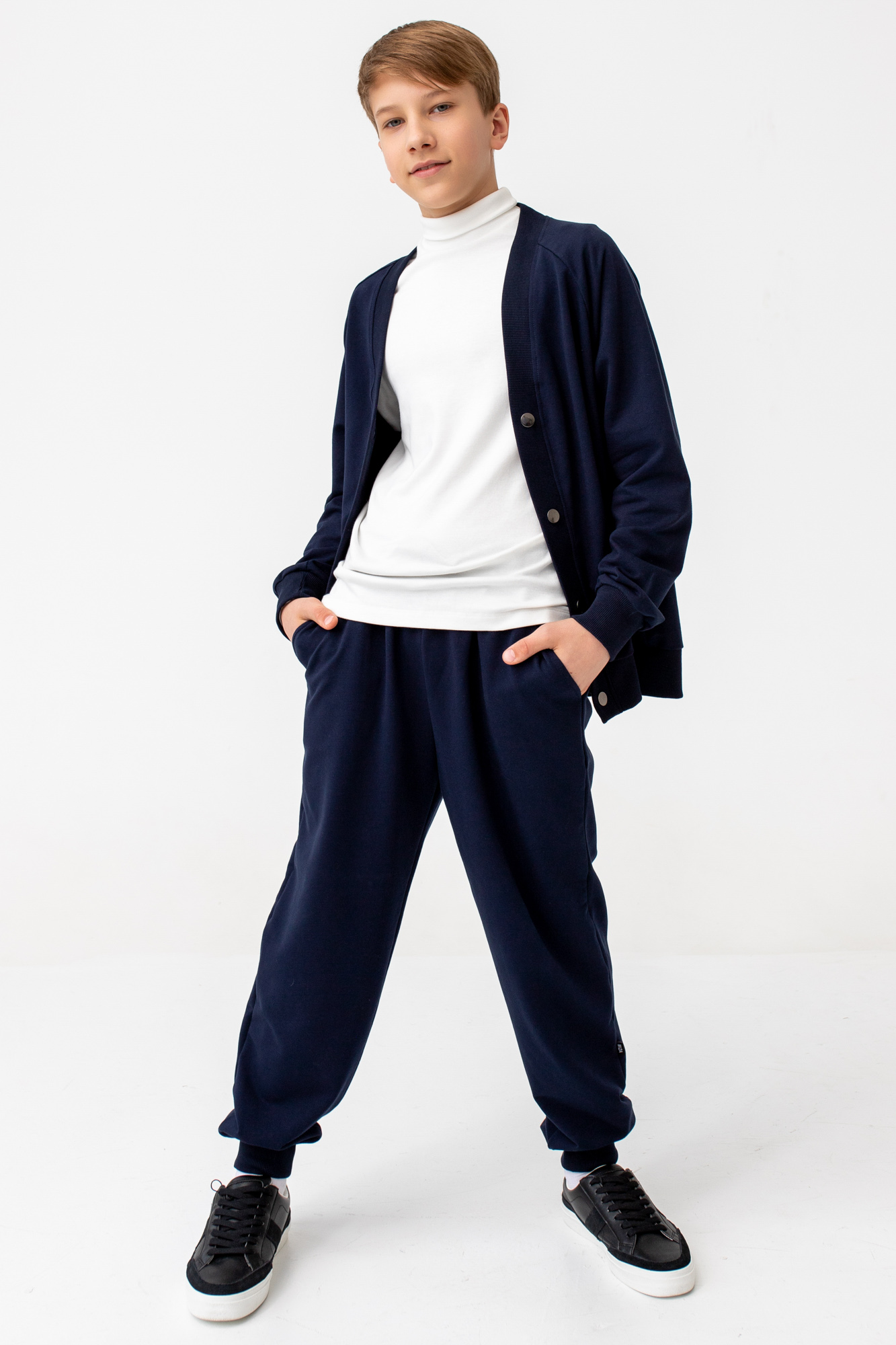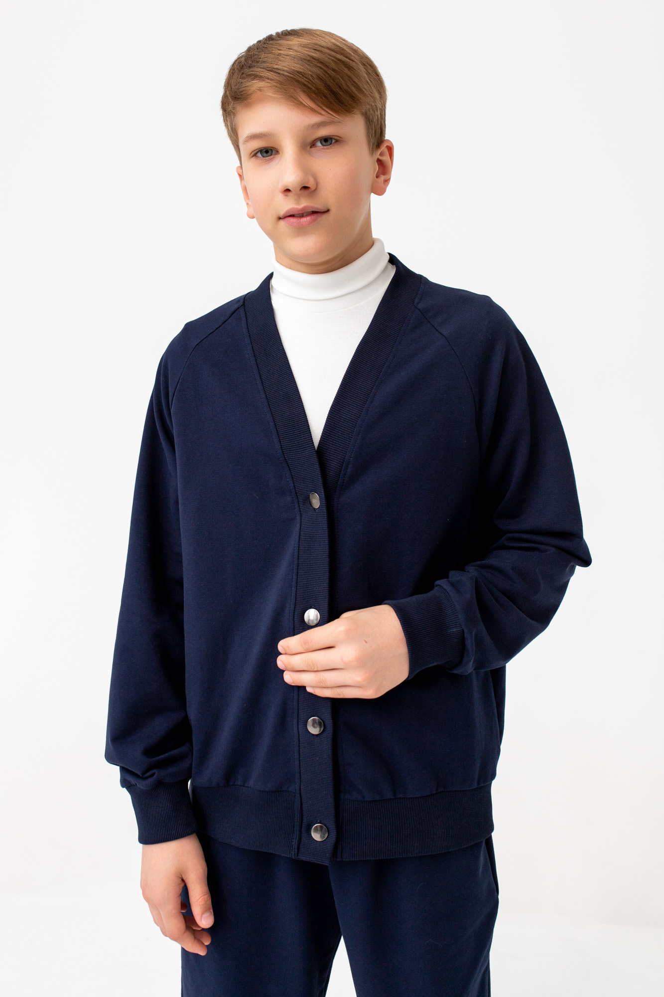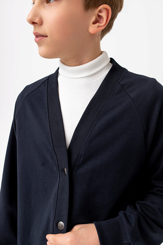 Кардиган свободного кроя с застежкой на металлические пуговицы.