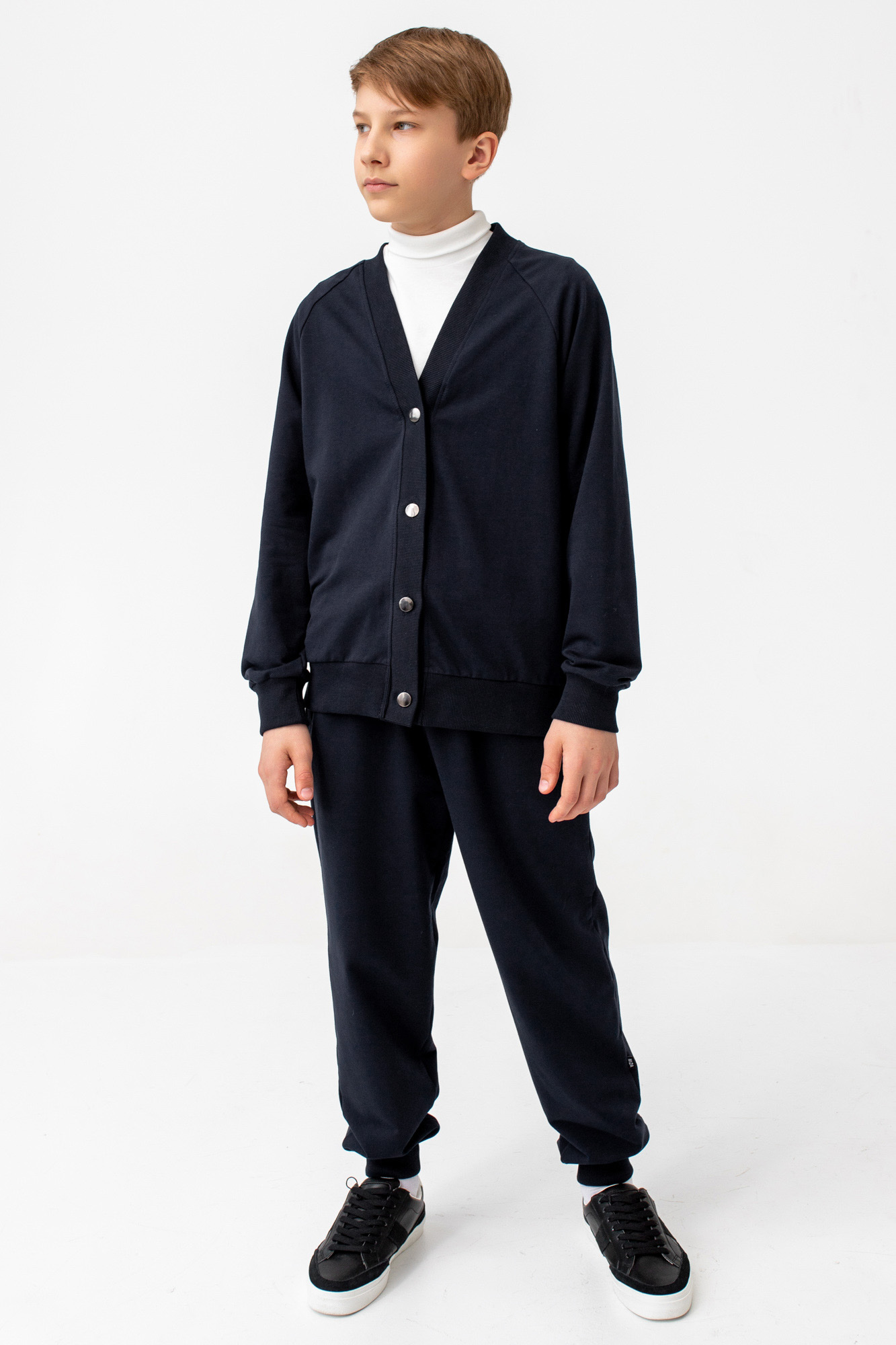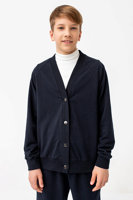 Кардиган свободного кроя с застежкой на металлические пуговицы.