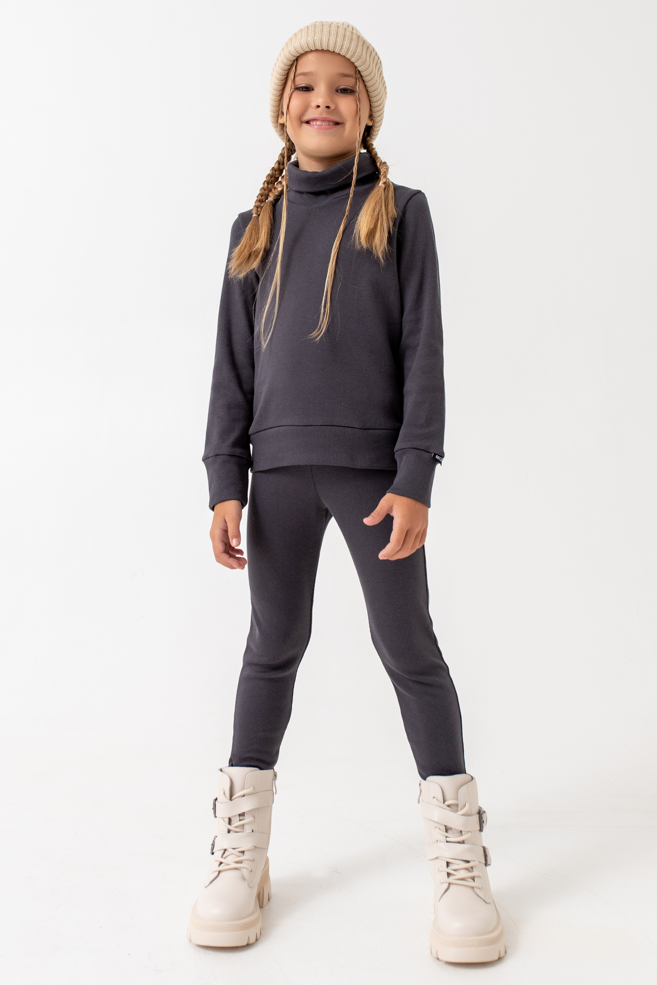 Низ легинсов на широкой манжете, пояс на эластичной резине, на поясе фирменная нашивка.