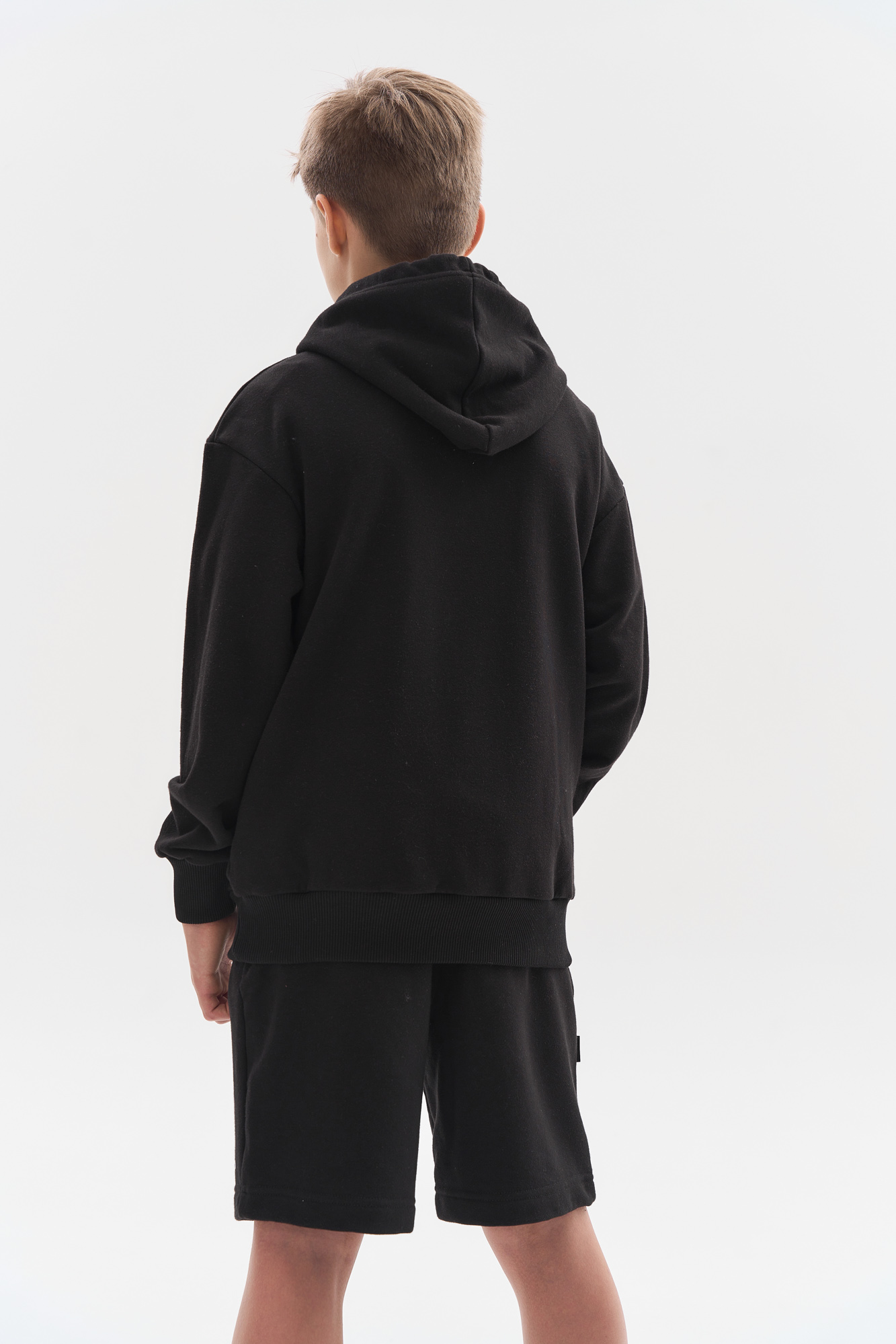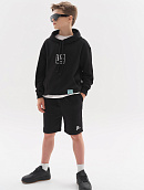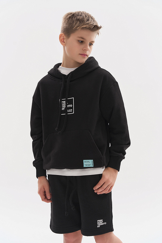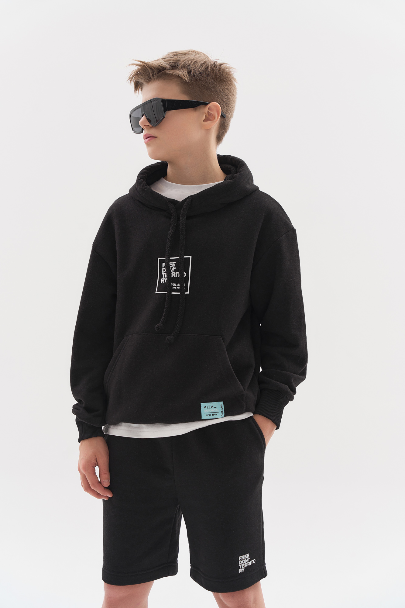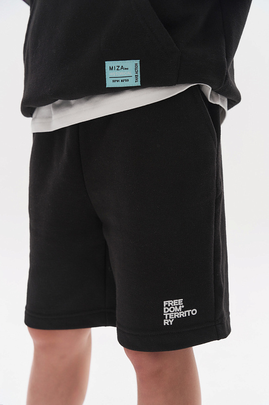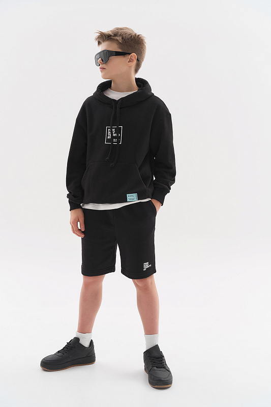 Костюм выполнен из мягкого плотного трикотажа с петельной изнанкой.