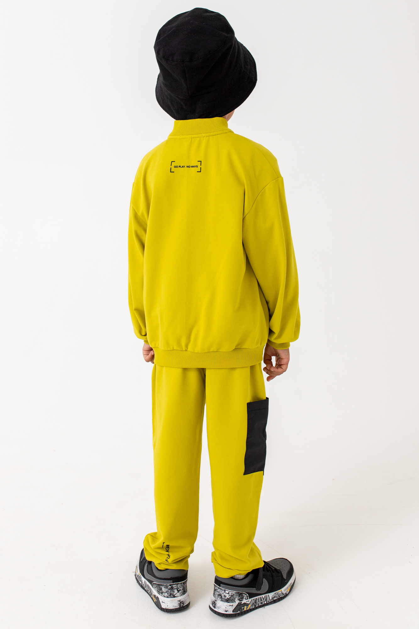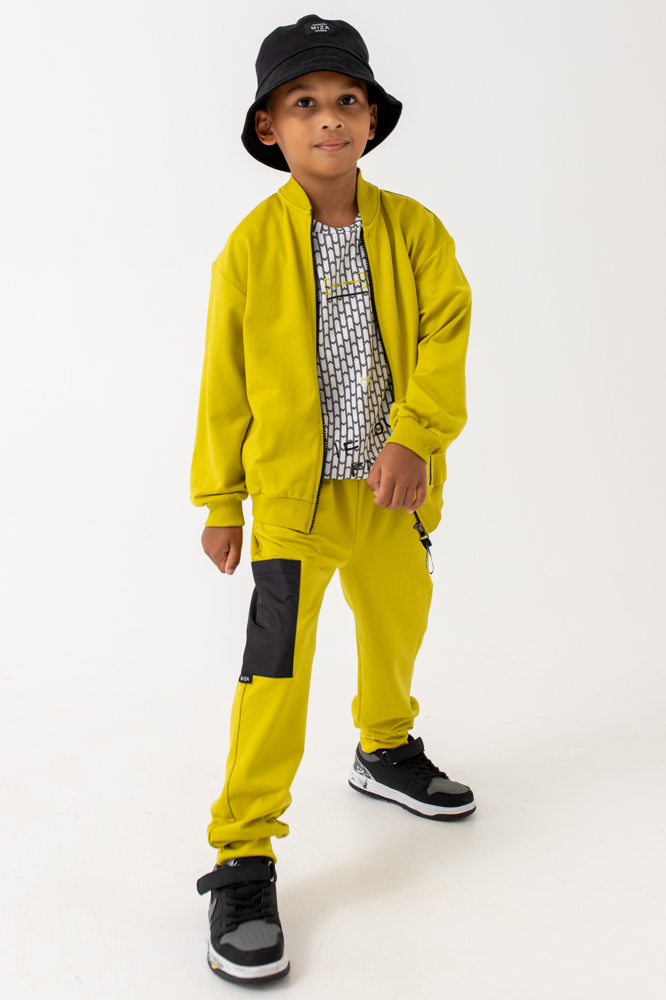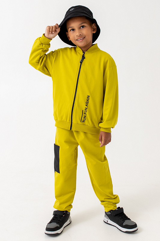 Костюм состоит из бомбера с застежкой-молнией и брюк-джоггеров.
