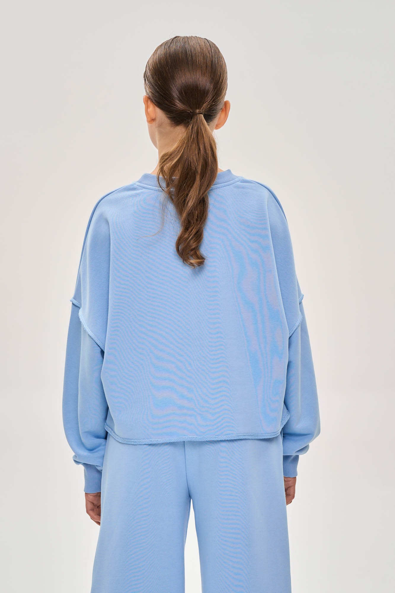 Костюм свободного кроя из премиального футера с петельной изнанкой.