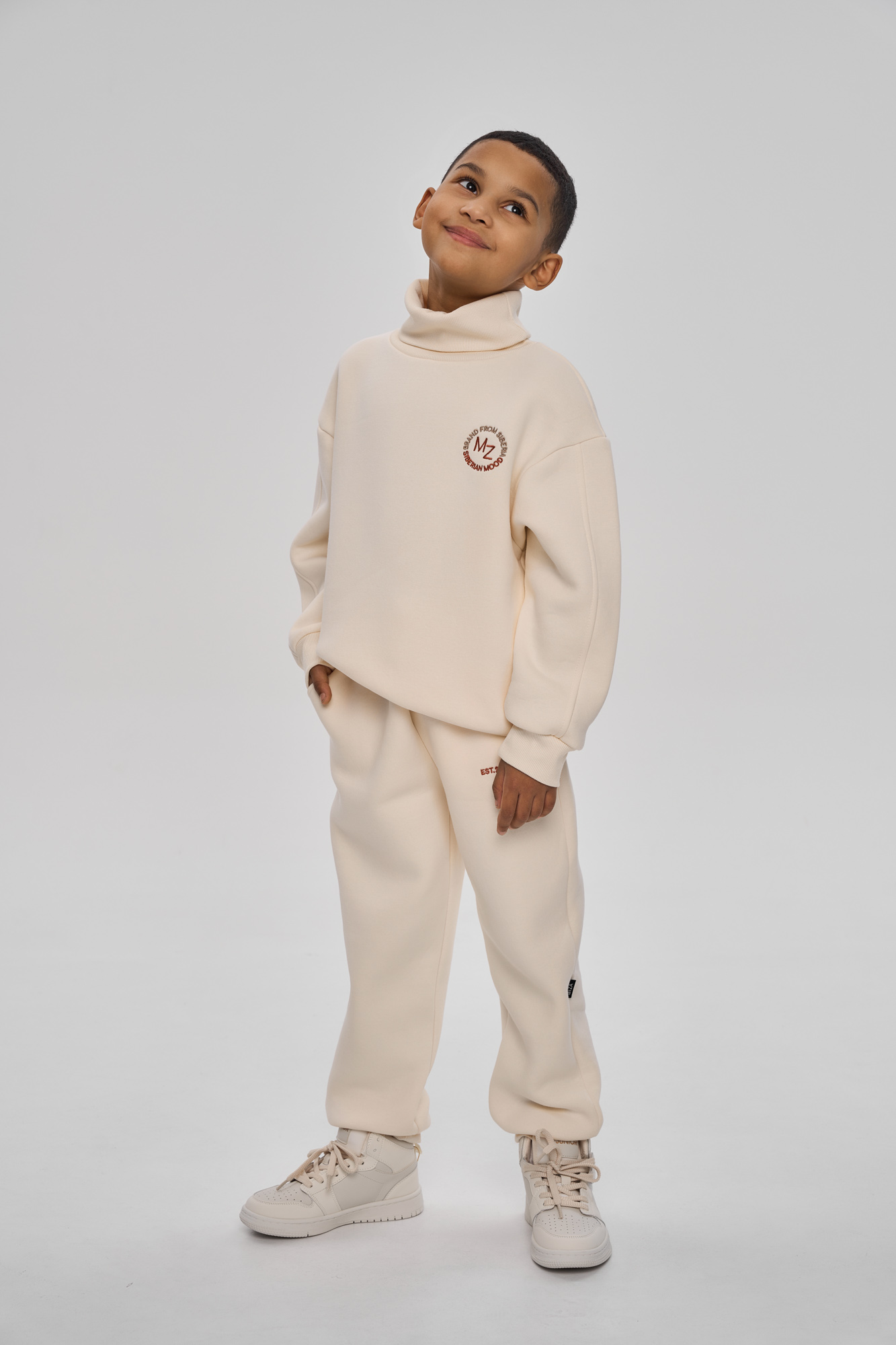 Состоит из свитщота с воротником-стойкой и брюк-джоггеров.