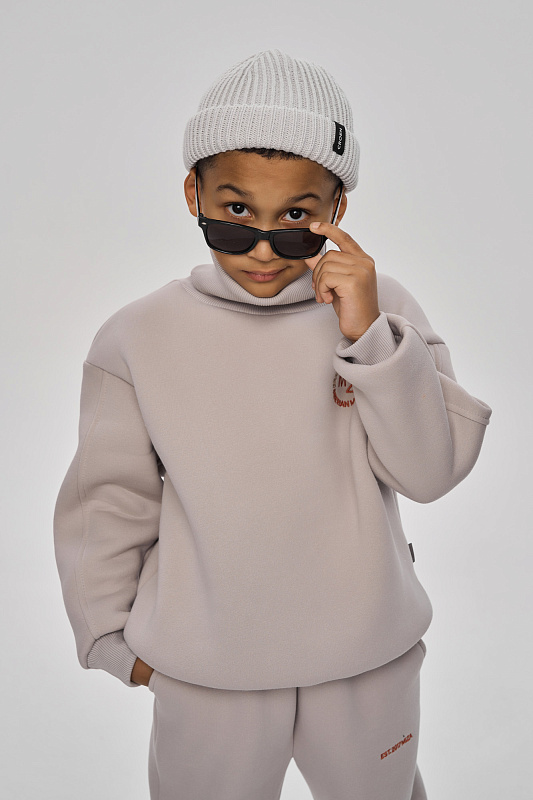 Состоит из свитщота с воротником-стойкой и брюк-джоггеров.