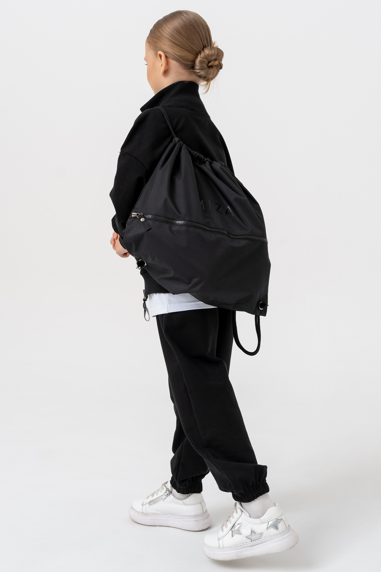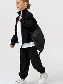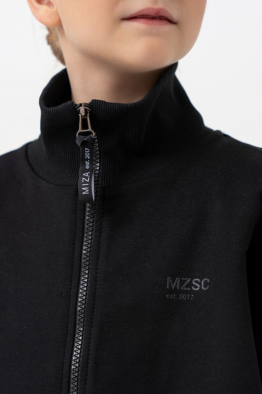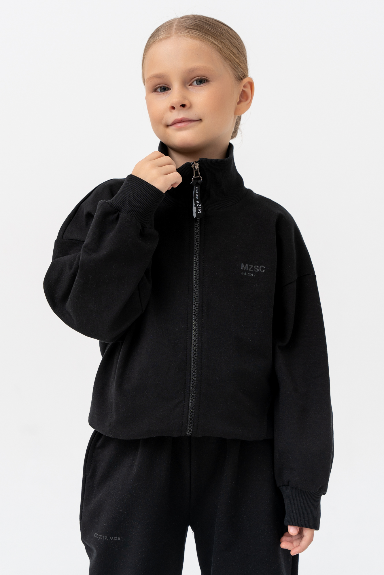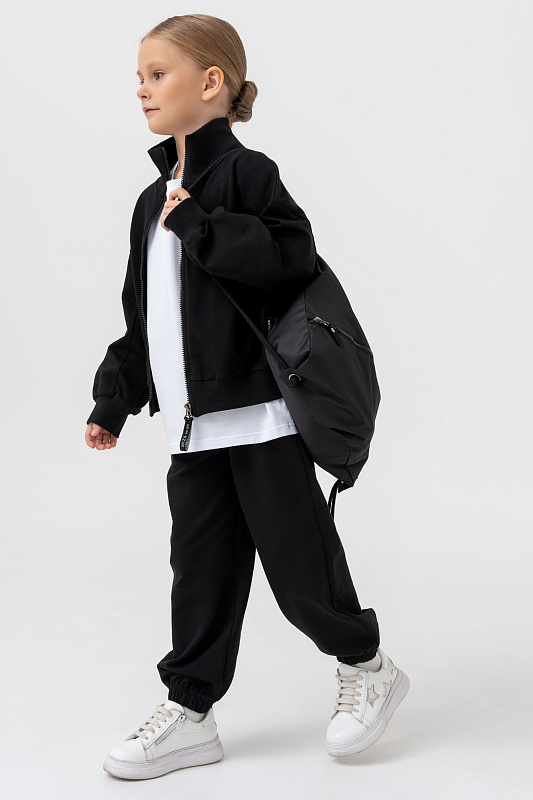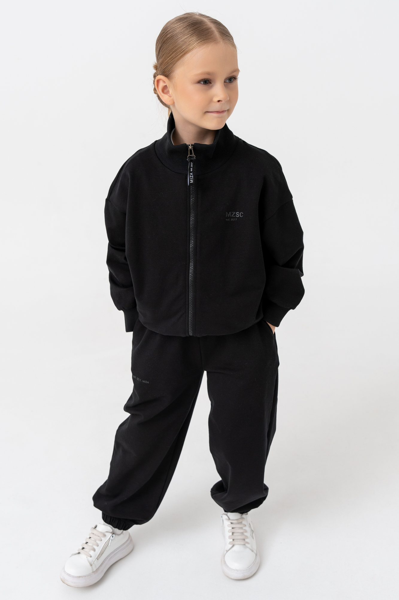 Костюм состоит из свитшота объемного кроя на молнии, с воротником-стойкой.