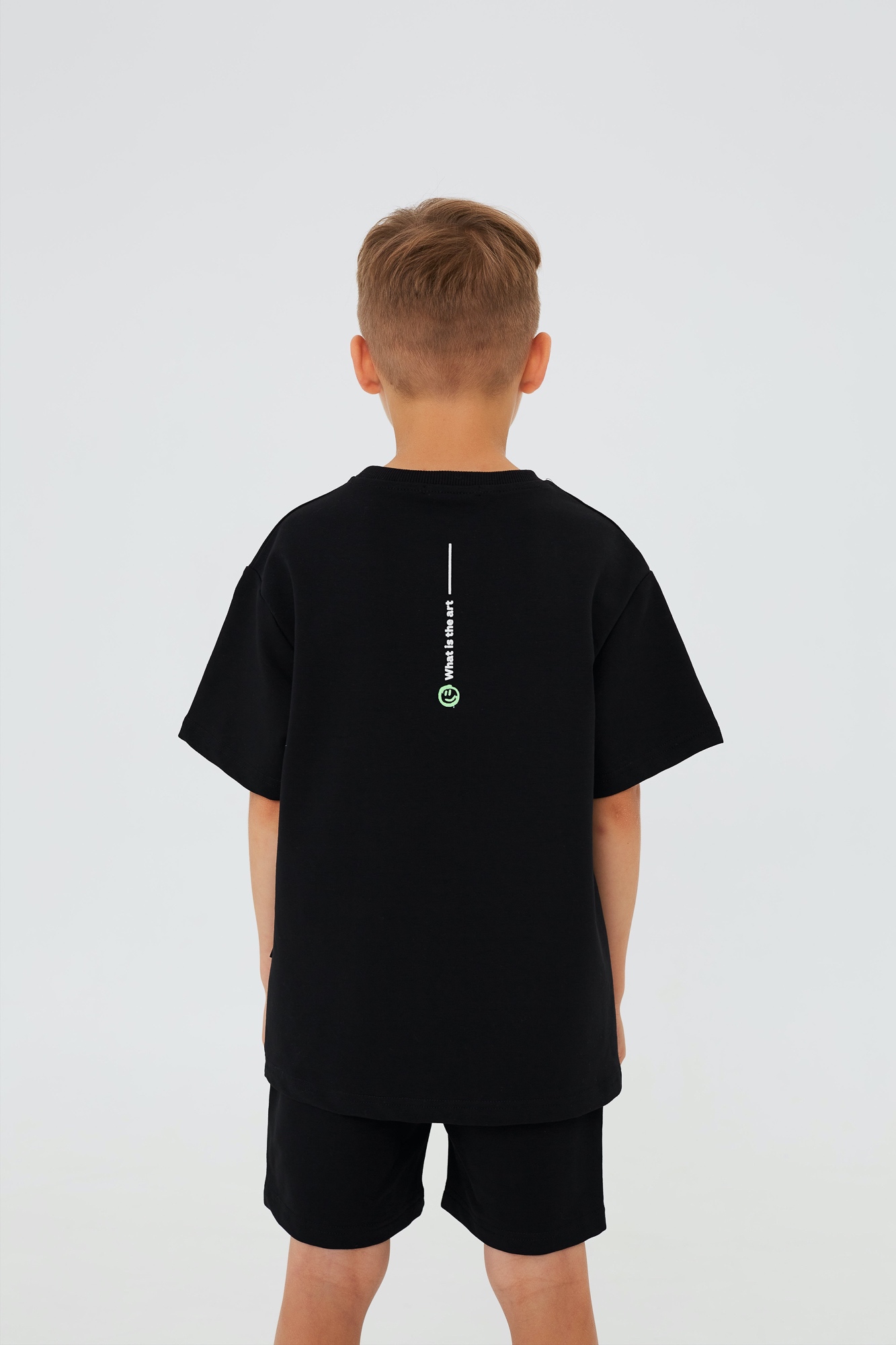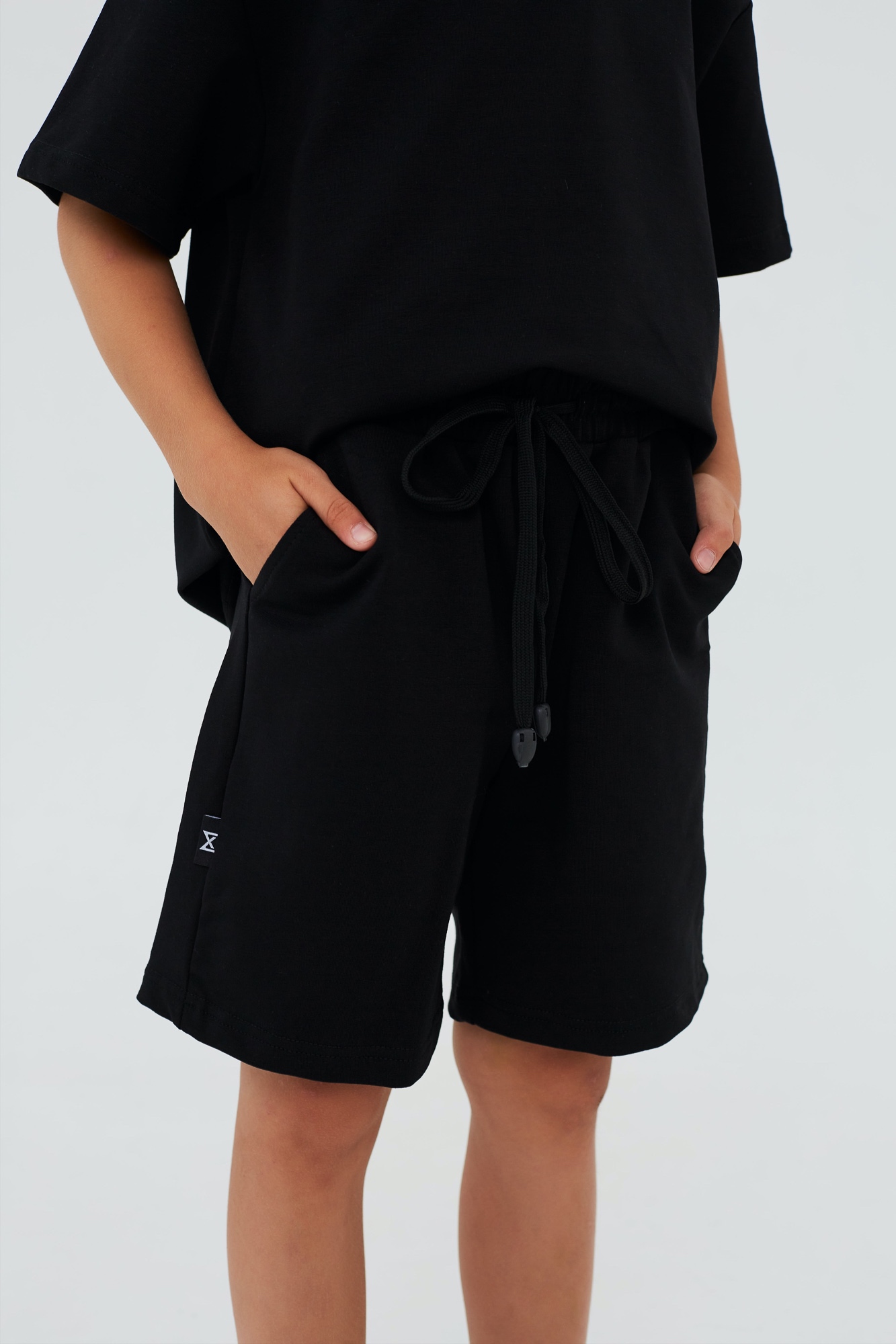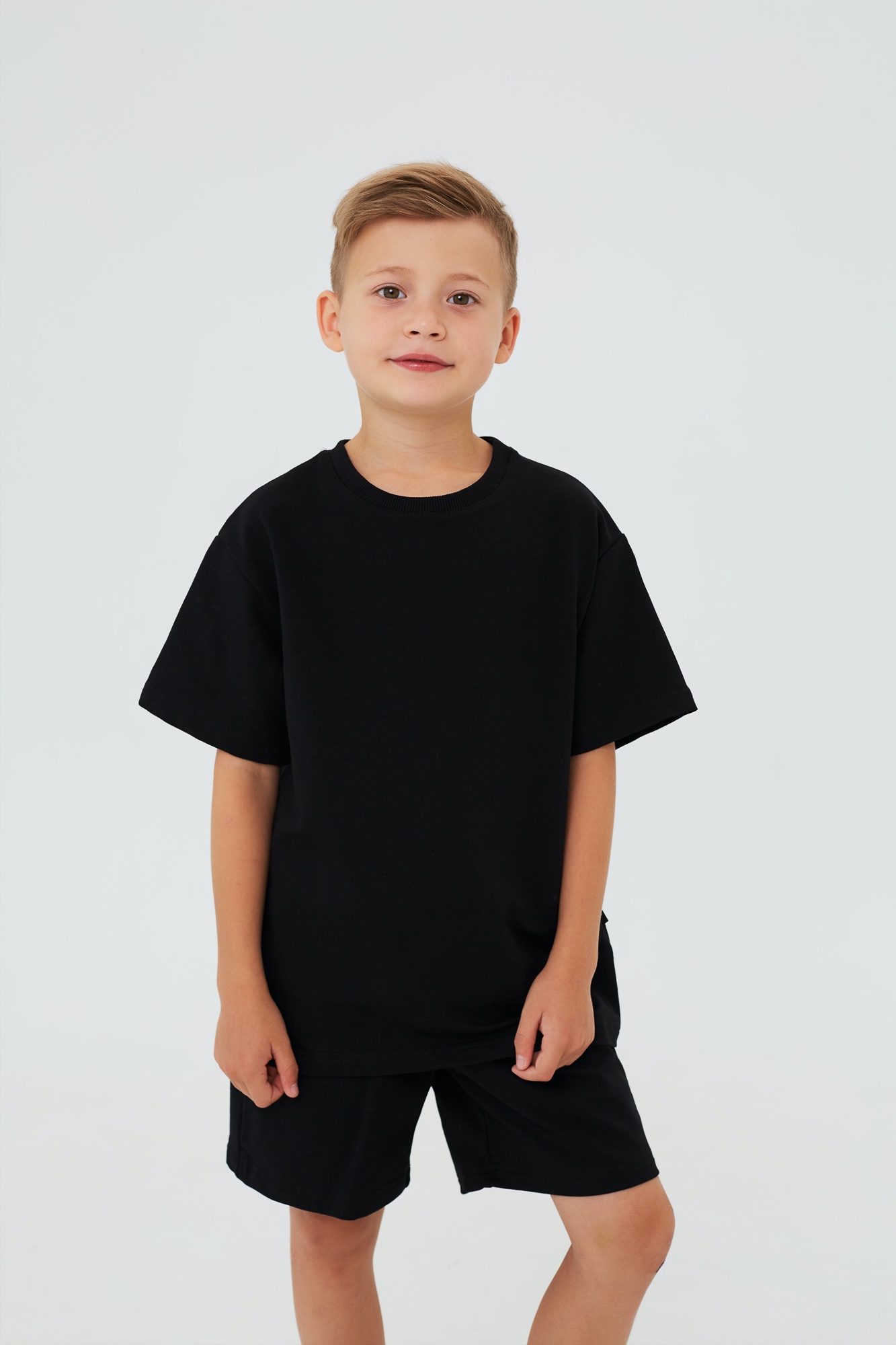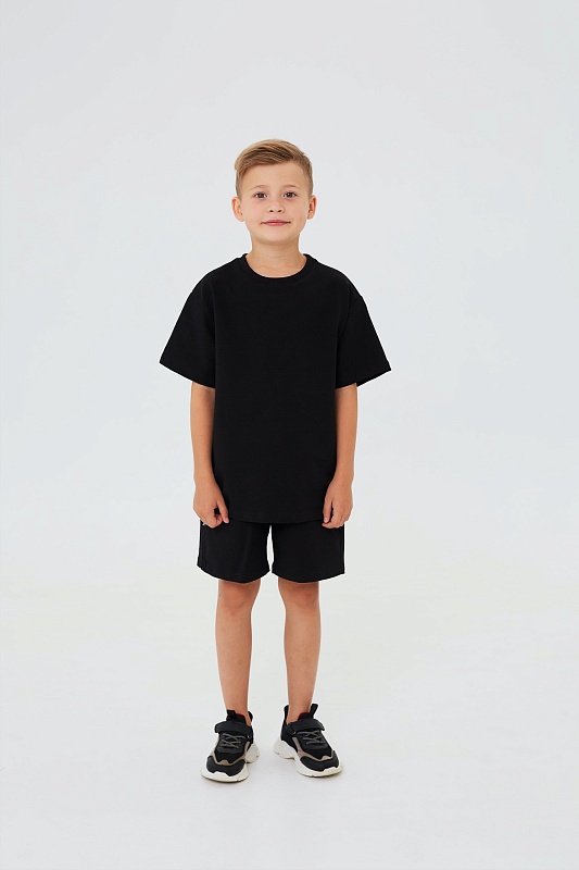 Состоит из свободной футболки и прямых шорт.