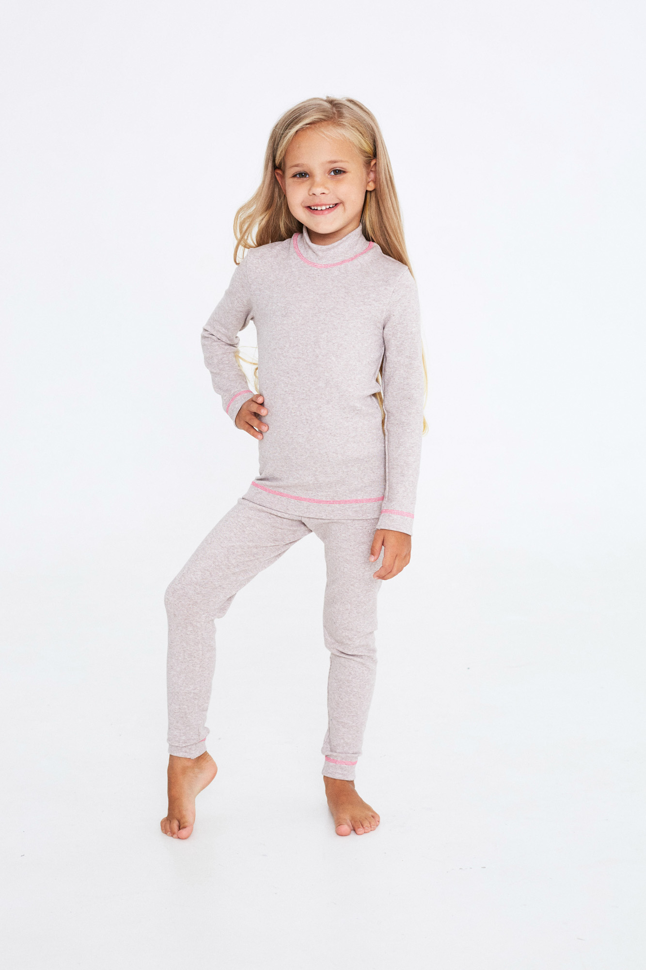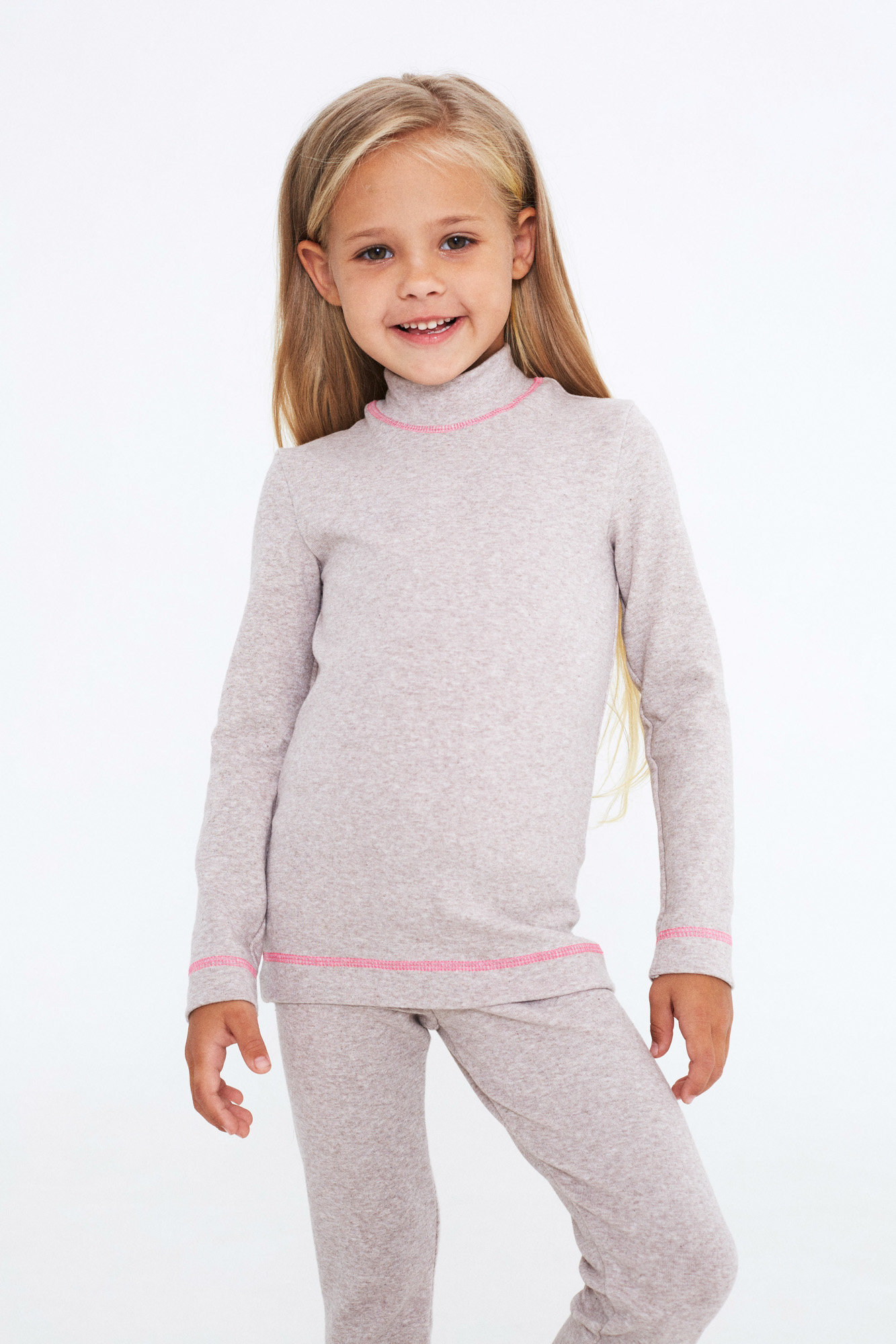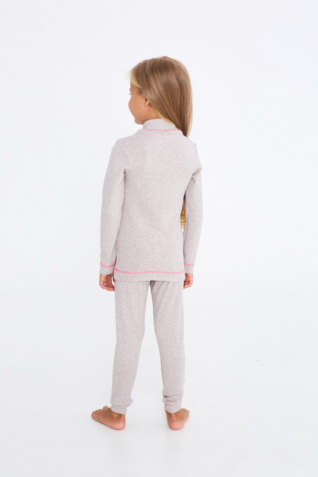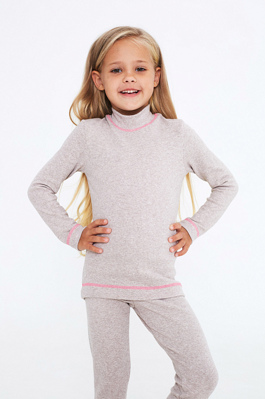 Комплект-поддева для девочек, состоит из лонгслива с воротником-стойкой и узких брючек.