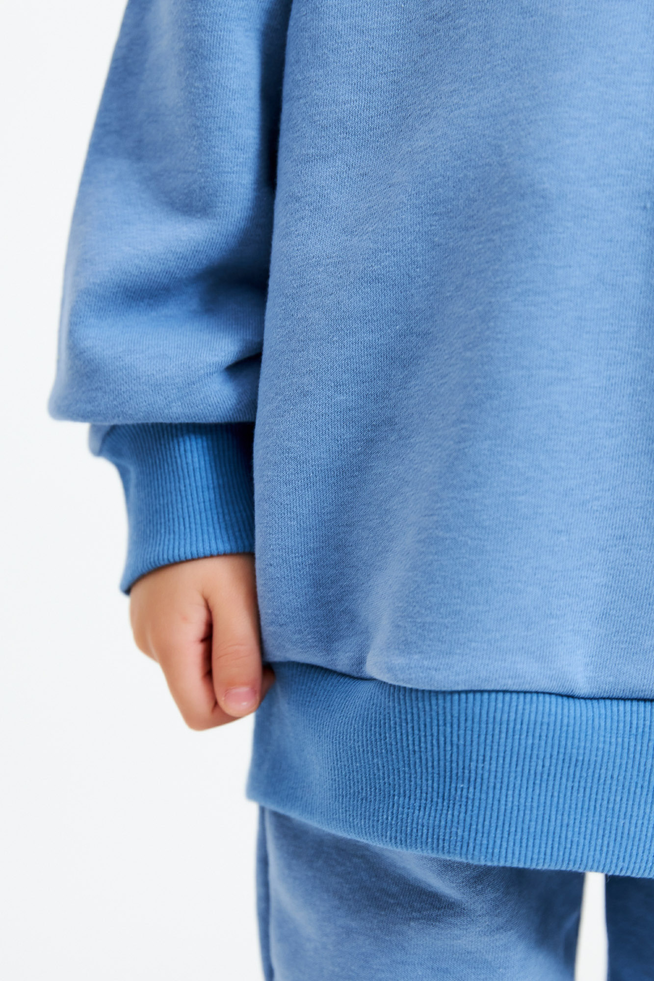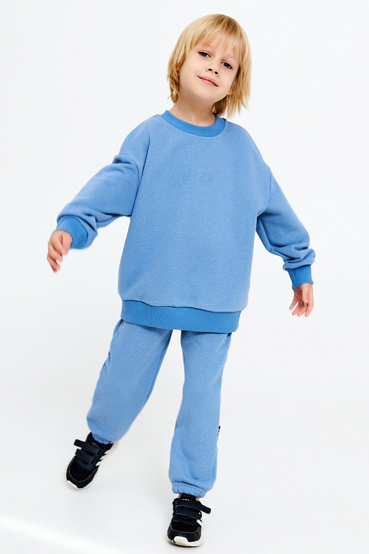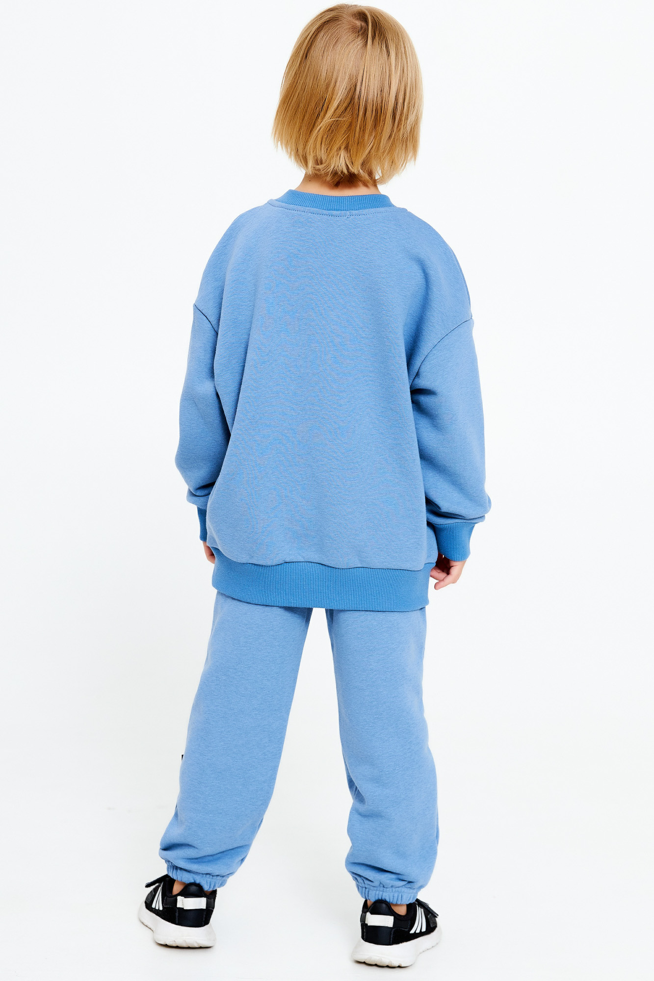 Состоит из свитшота базового кроя с небольшим принтом в цвет полотна и брюк-джогеров.