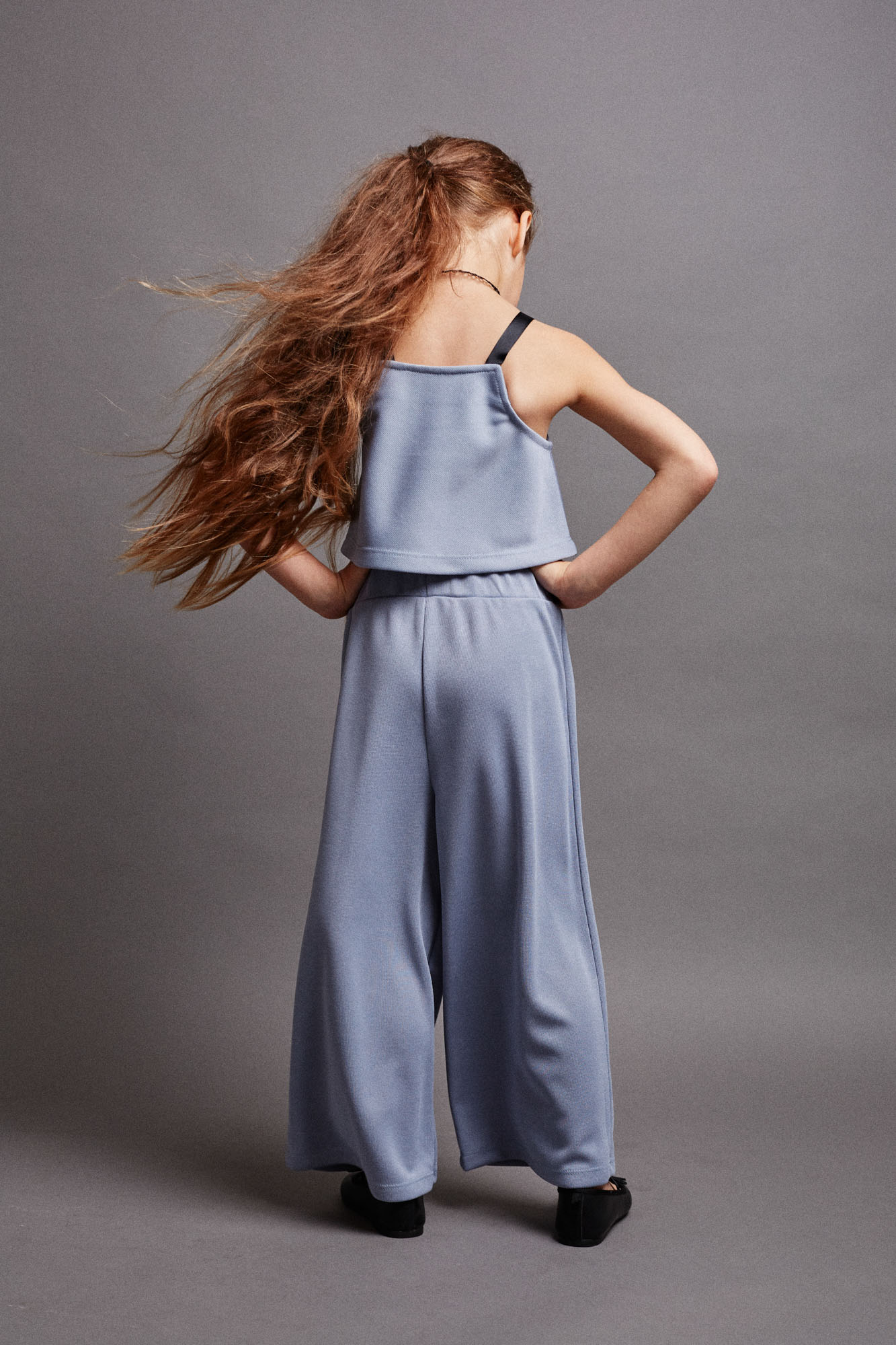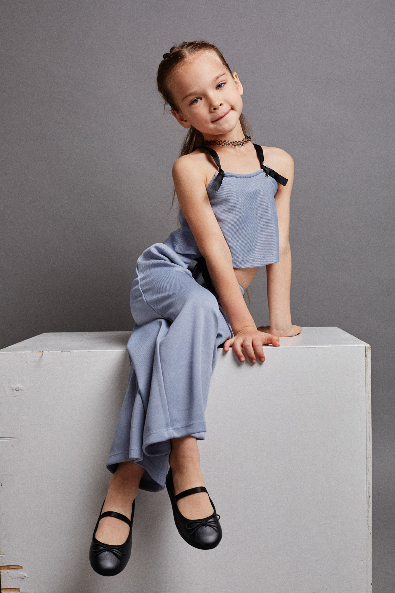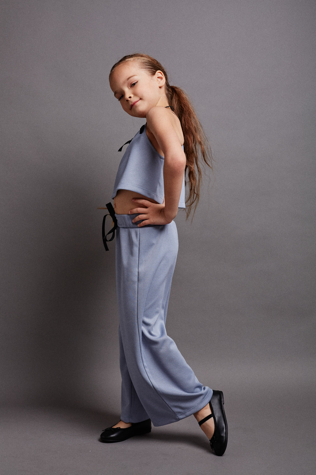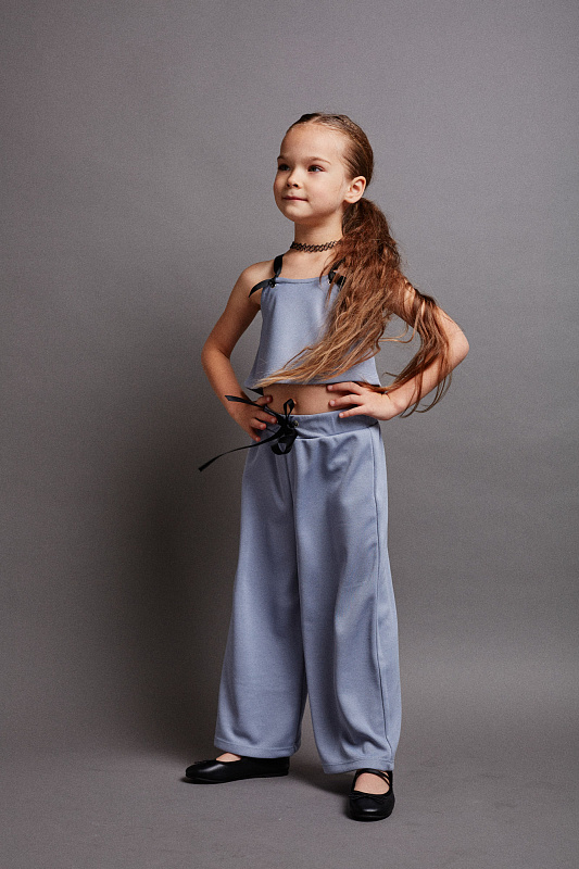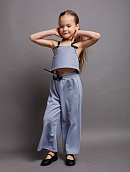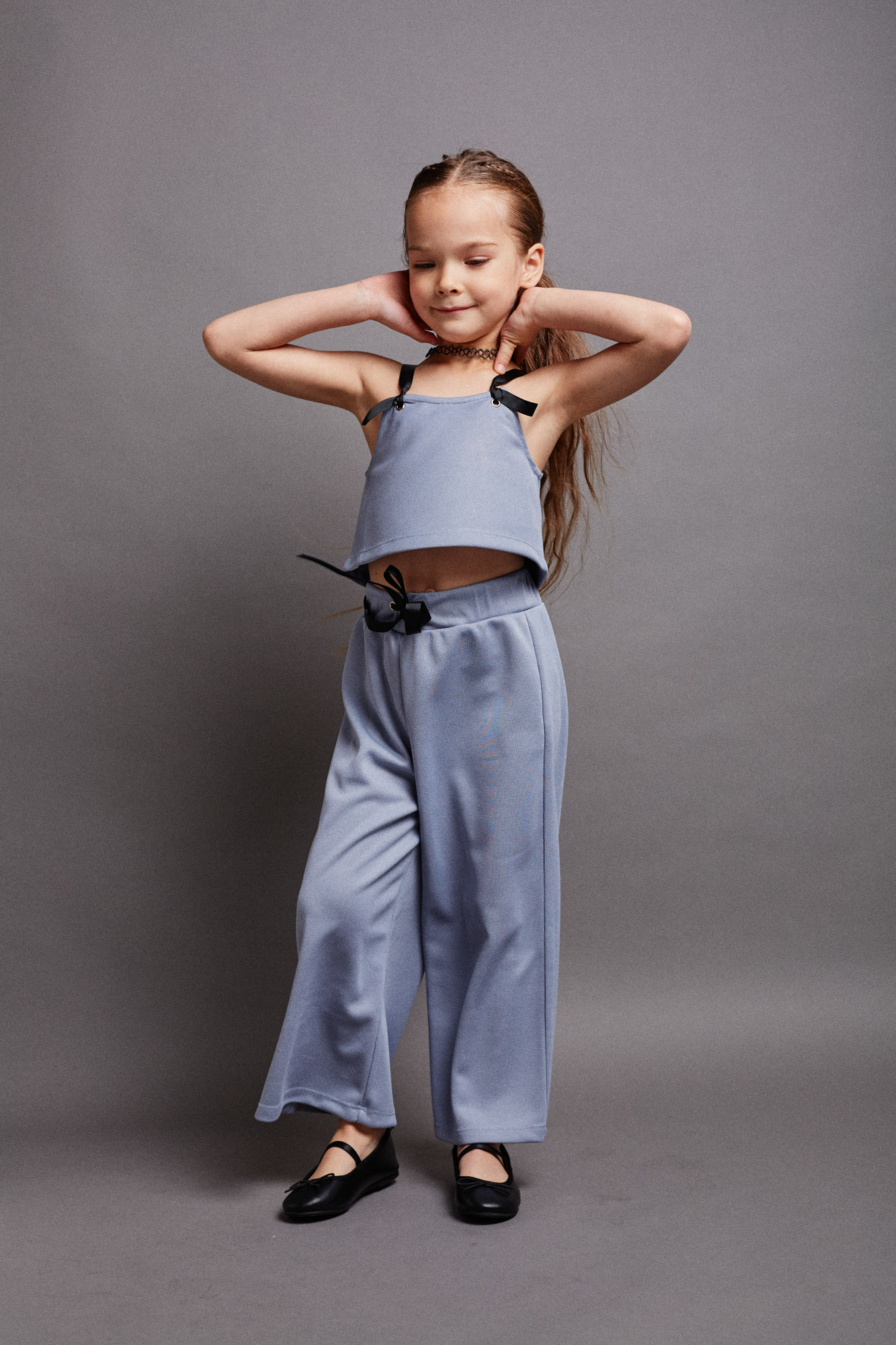 Комплект из элегантных брюк-кюлотов с декоративным черным бантом их текстурированной ленты и укороченного топа.
