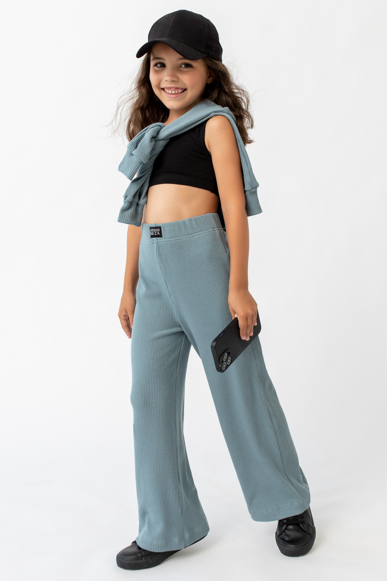 Пояс брюк на мягкой широкой резине, оформлен брендированной текстильной нашивкой.