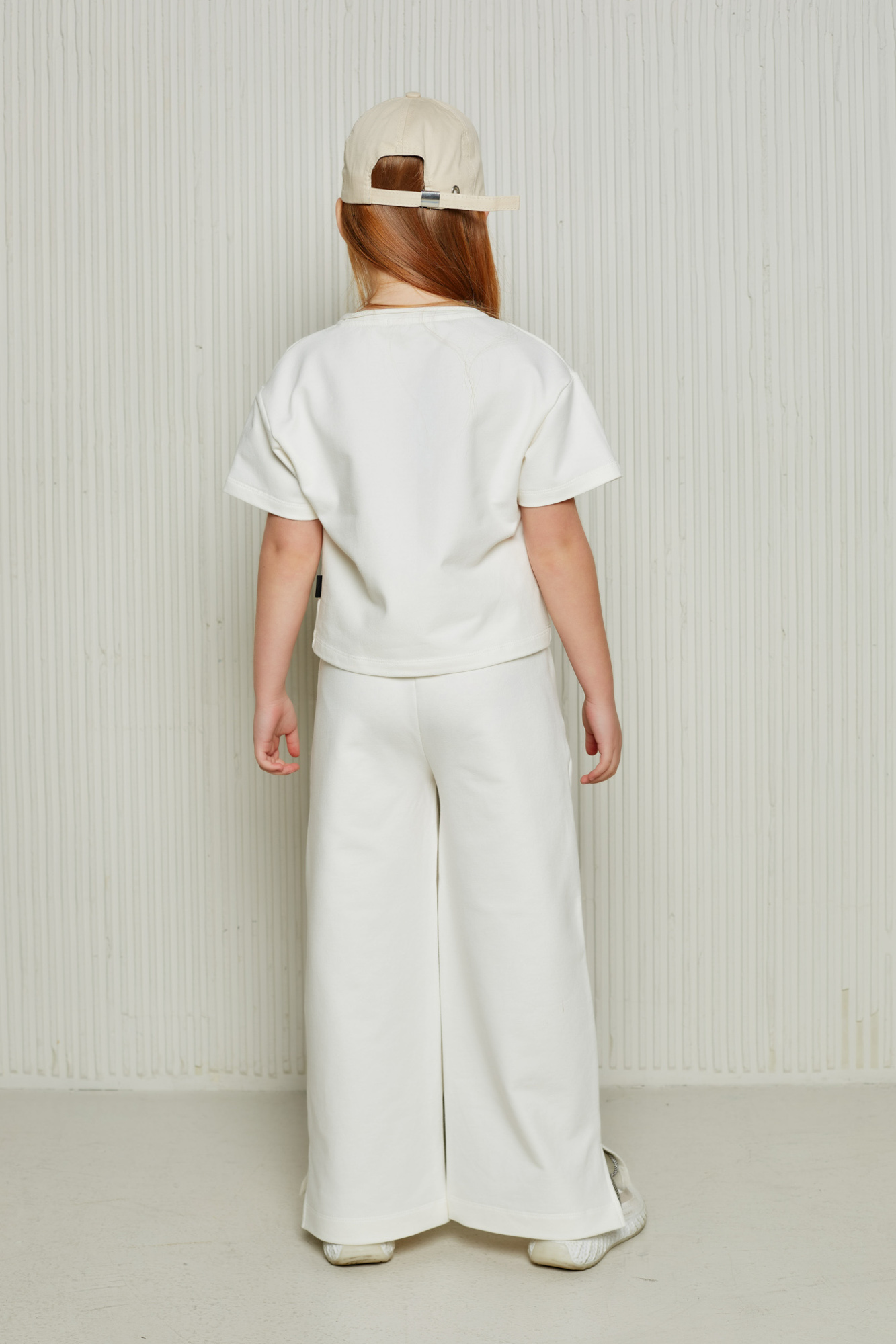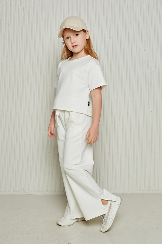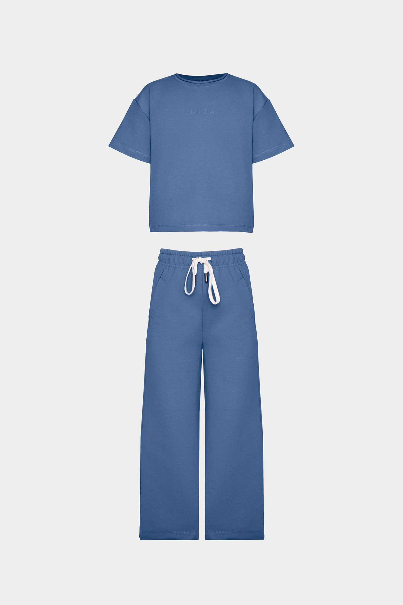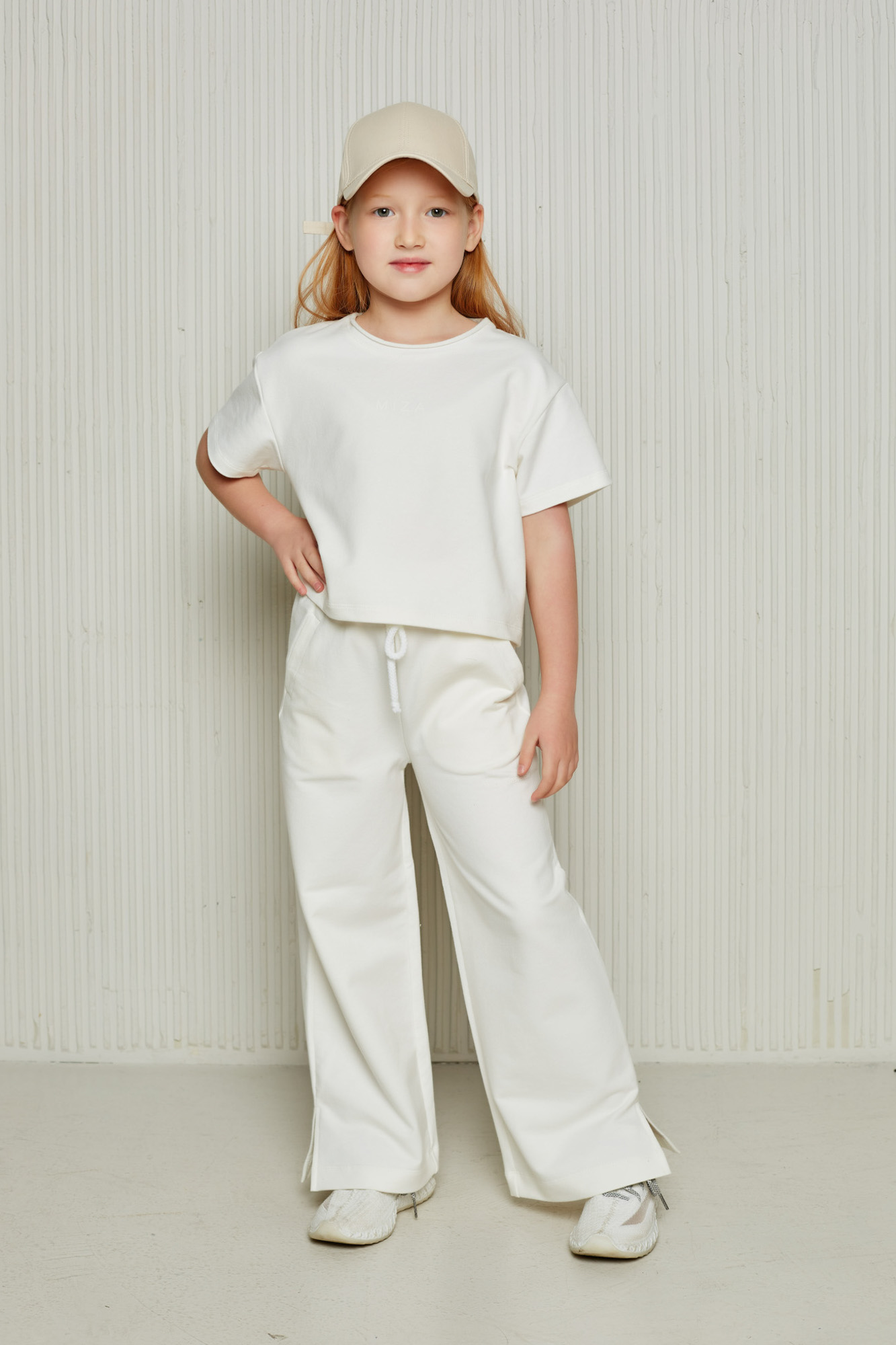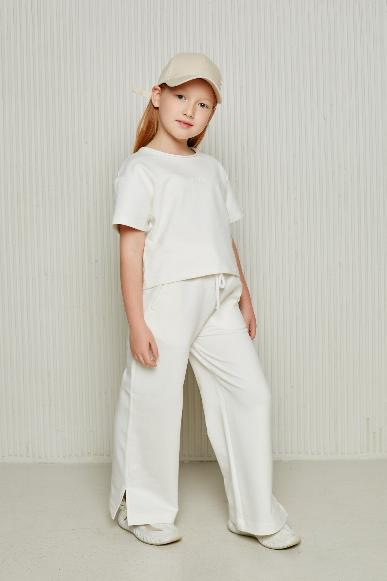 Состоит из укороченной свободной футболки и широких прямых брюк.