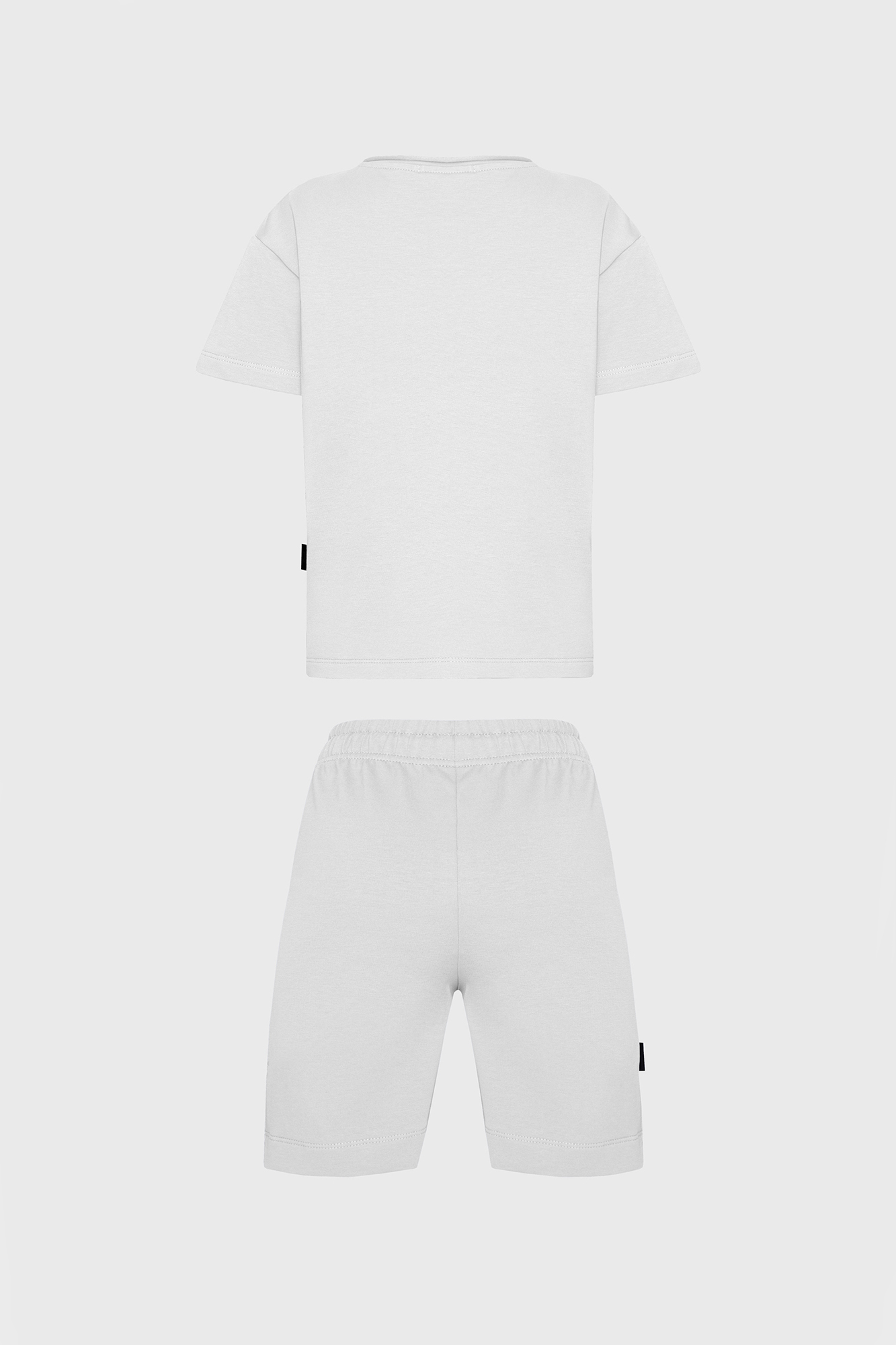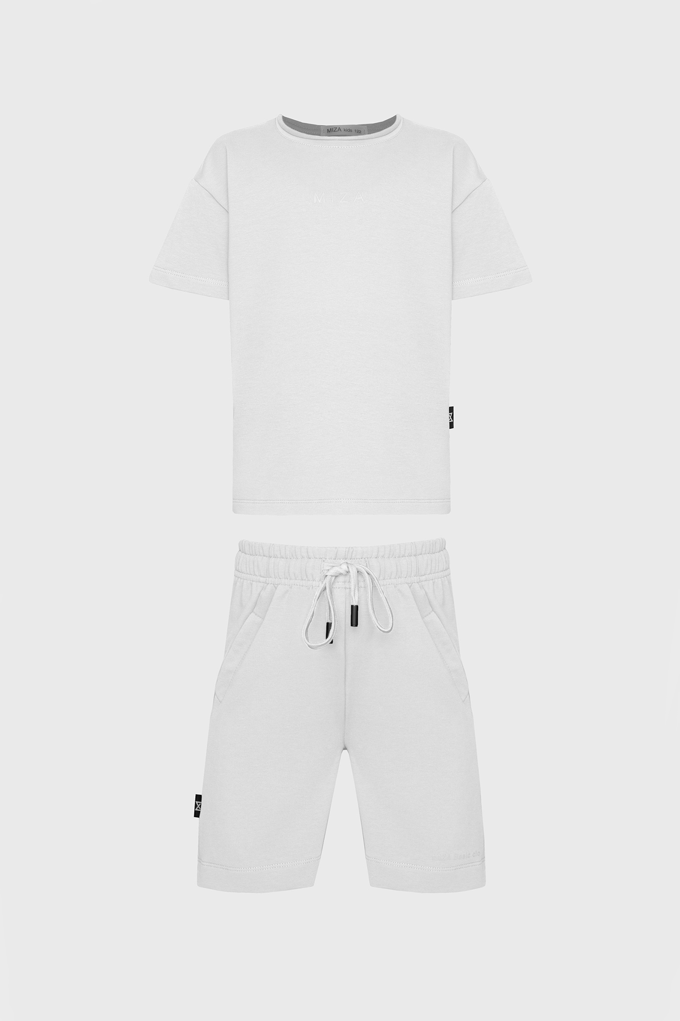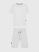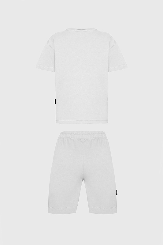 Состоит из прямой футболки свободного силуэта и широких шорт.