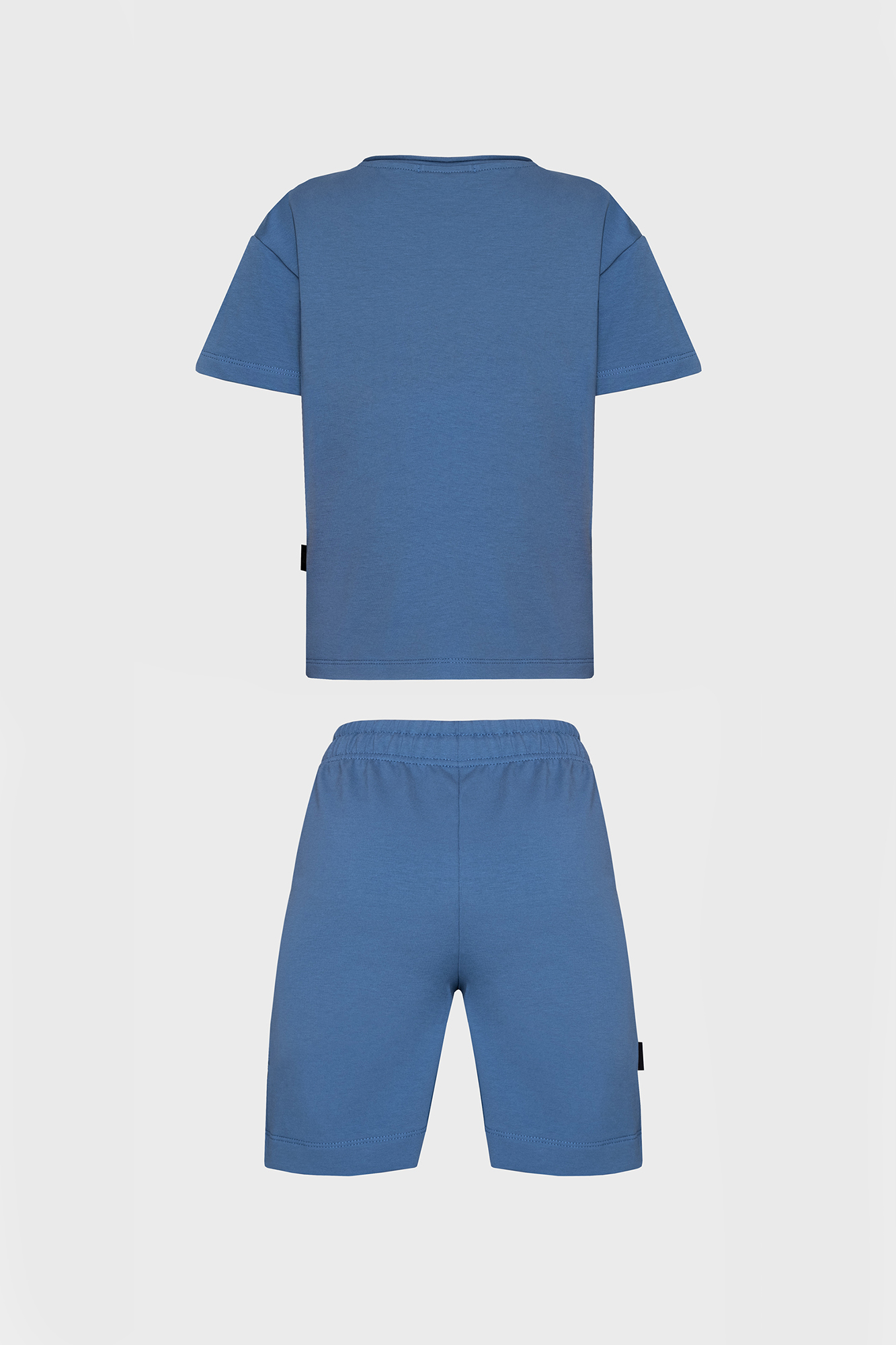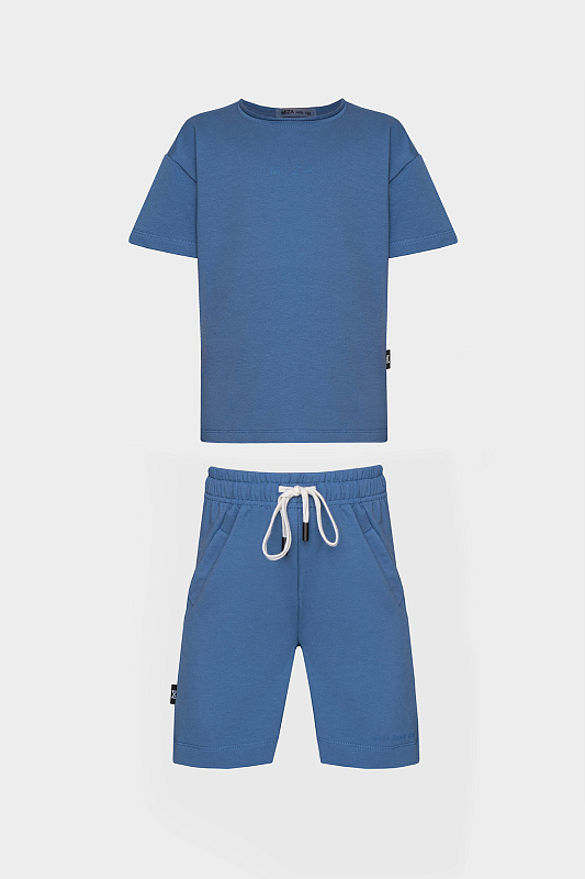 Состоит из прямой футболки свободного силуэта и широких шорт.